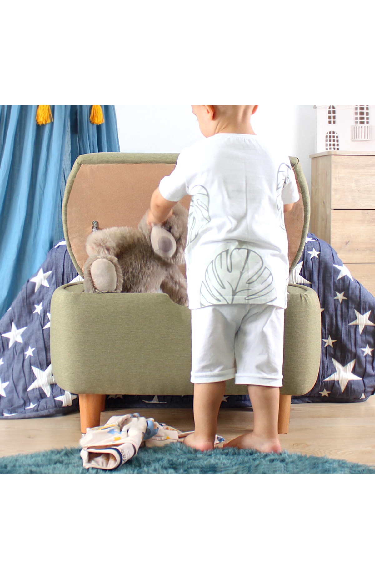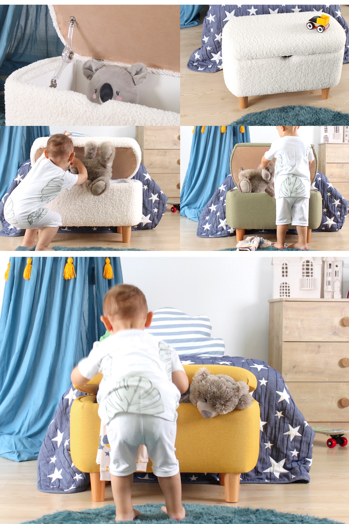 • Çocuk odası ve oyun alanlarında konforlu ek oturma alanı sağlarken aynı zamanda fonksiyonel depolama alanı yaratır.