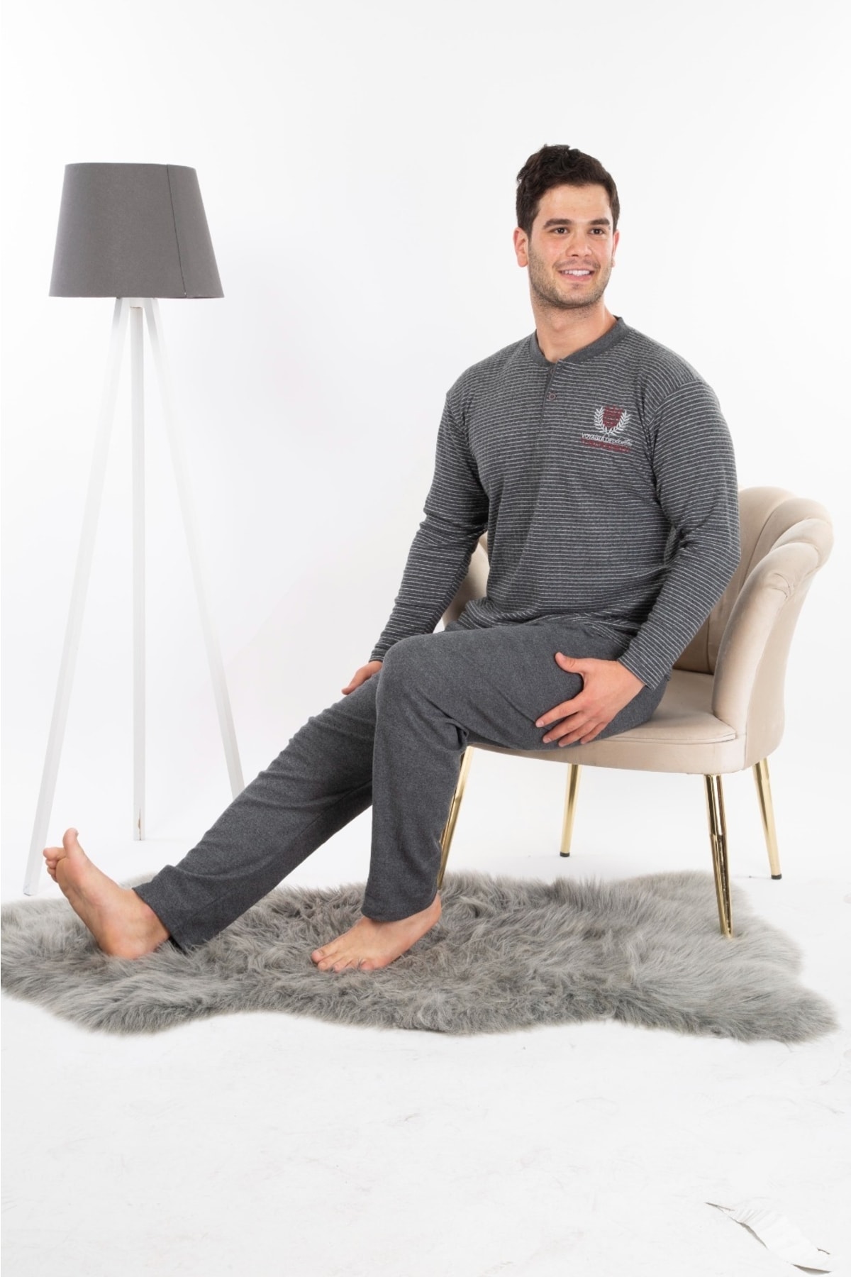 Düğmeli yaka tasarımı ile şıklığı ve rahatlığı bir arada sunan, kışlık erkek pijama takımı