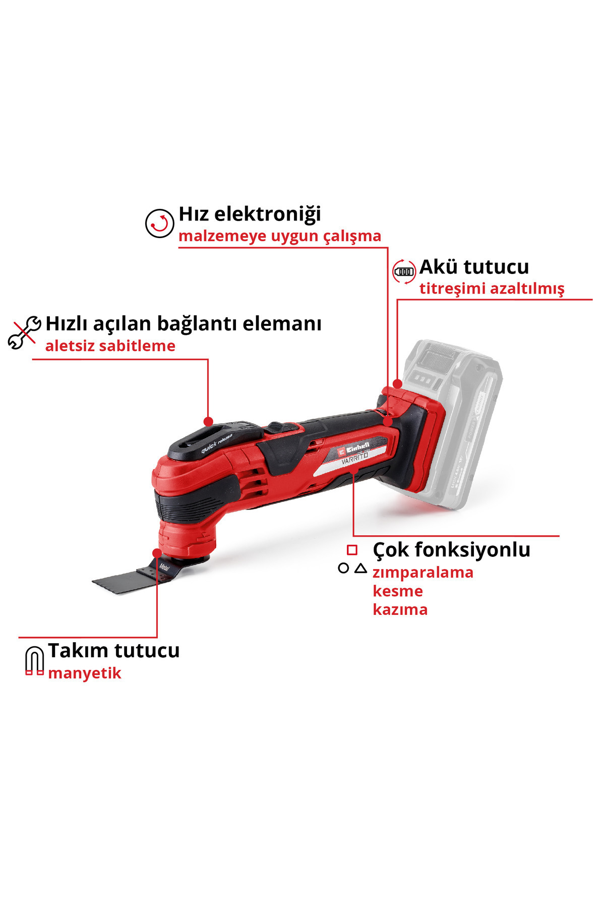 Einhell VARRITO Akülü Raspalama Makinesi, çok fonksiyonlu ve yüksek kaliteli bir ürün olup geniş kapsamlı özellikleriyle kesme, zımparalama veya kazıma gibi işlerinizi kolayca yapabilirsiniz.