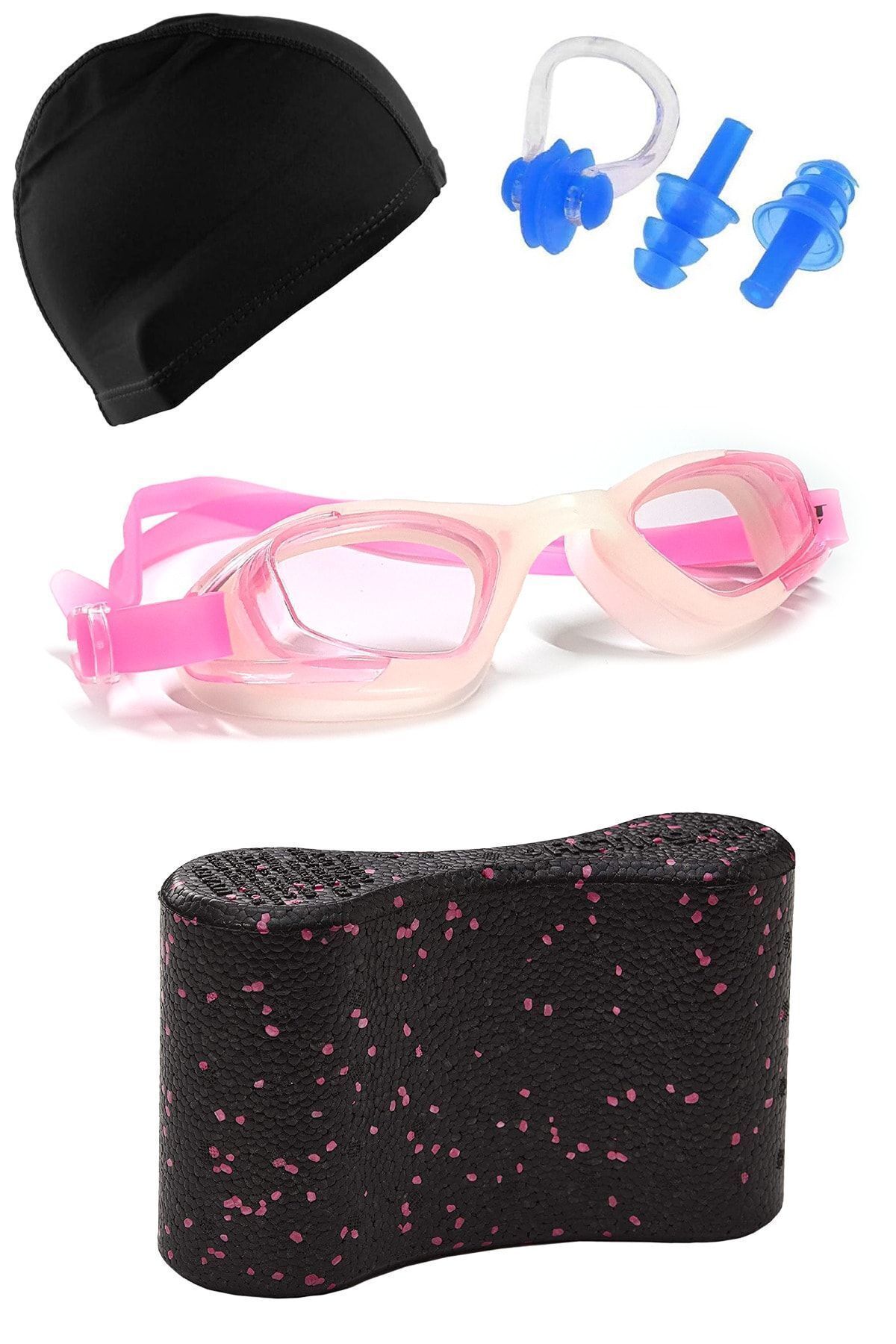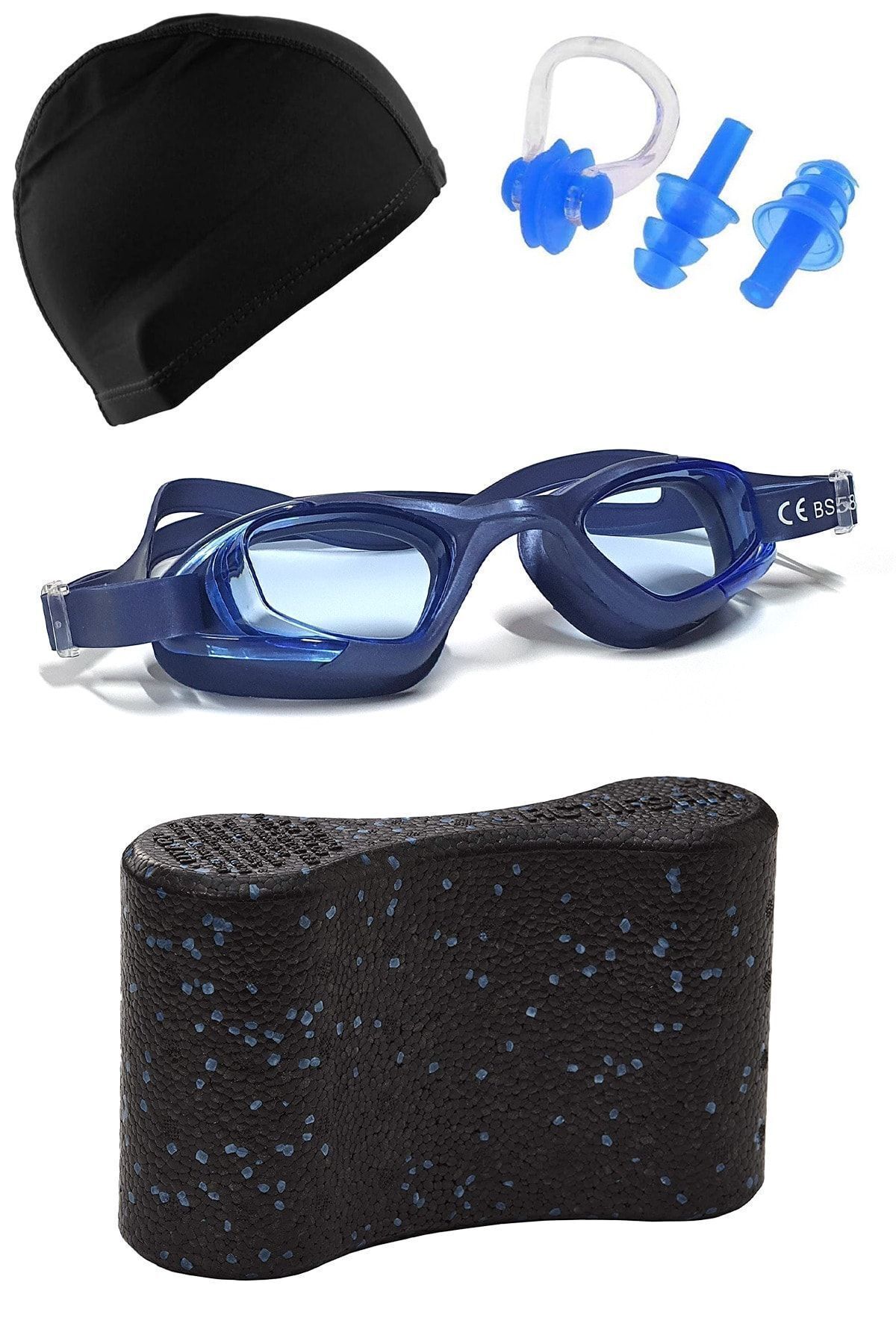 Yetişkin Silikon Yüzücü Gözlüğü Likra Bone Kulak Tıkacı Burun Klipsi ve Pull Buoy Seti Full Set Özel yeni dizayn şeffaf kutuda.