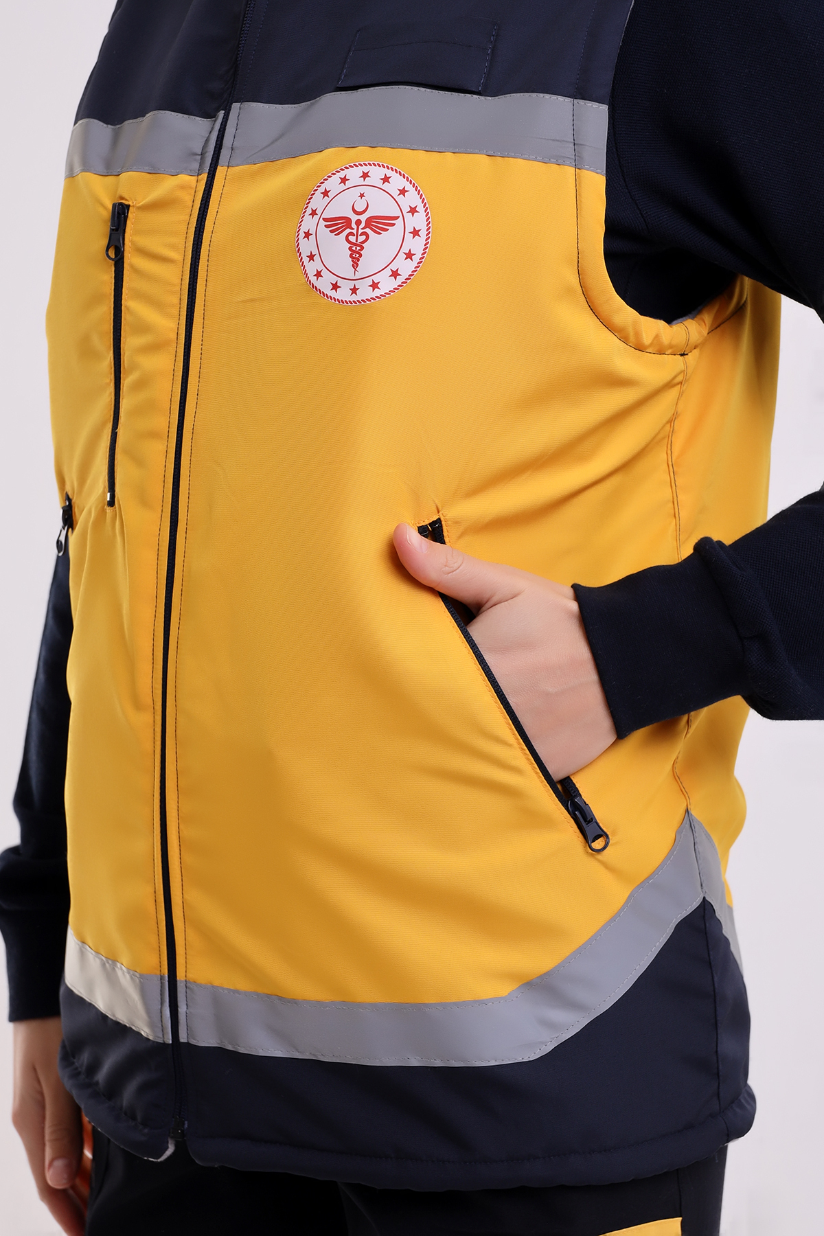 112 Acil Sağlık Personelleri, ATT Personelleri ve Paramedik Personelleri tarafından kullanılan Tam Fermuarlı, Çift Renkli (Sarı / Lacivert), Reflektörlü 112 Acil Yelek modellerimiz Bilenn Teksil kalitesi ile beğeninize sunulmuştur. 112 Acil Yelek Özellikleri Kadın ve Erkek Kullanımına Uygundur (Unisex)