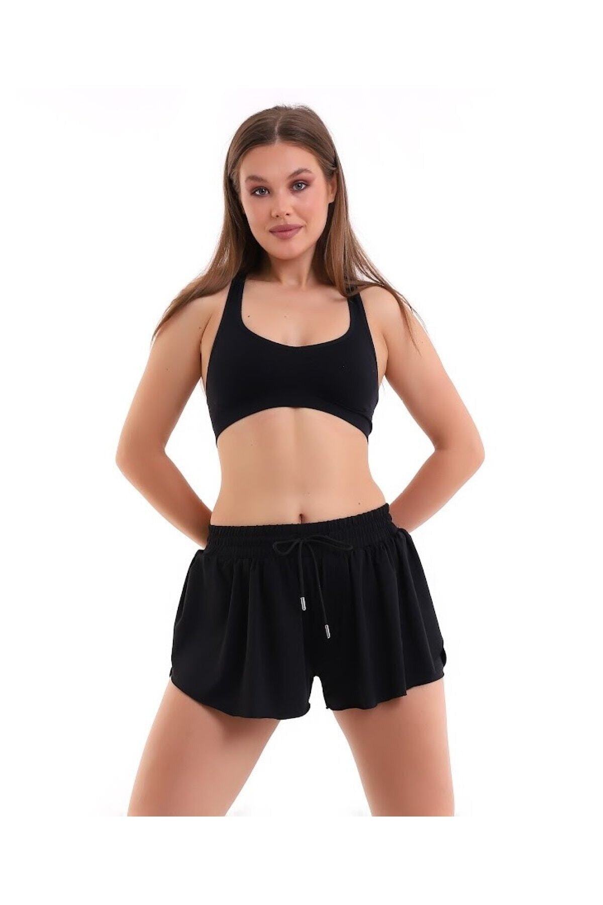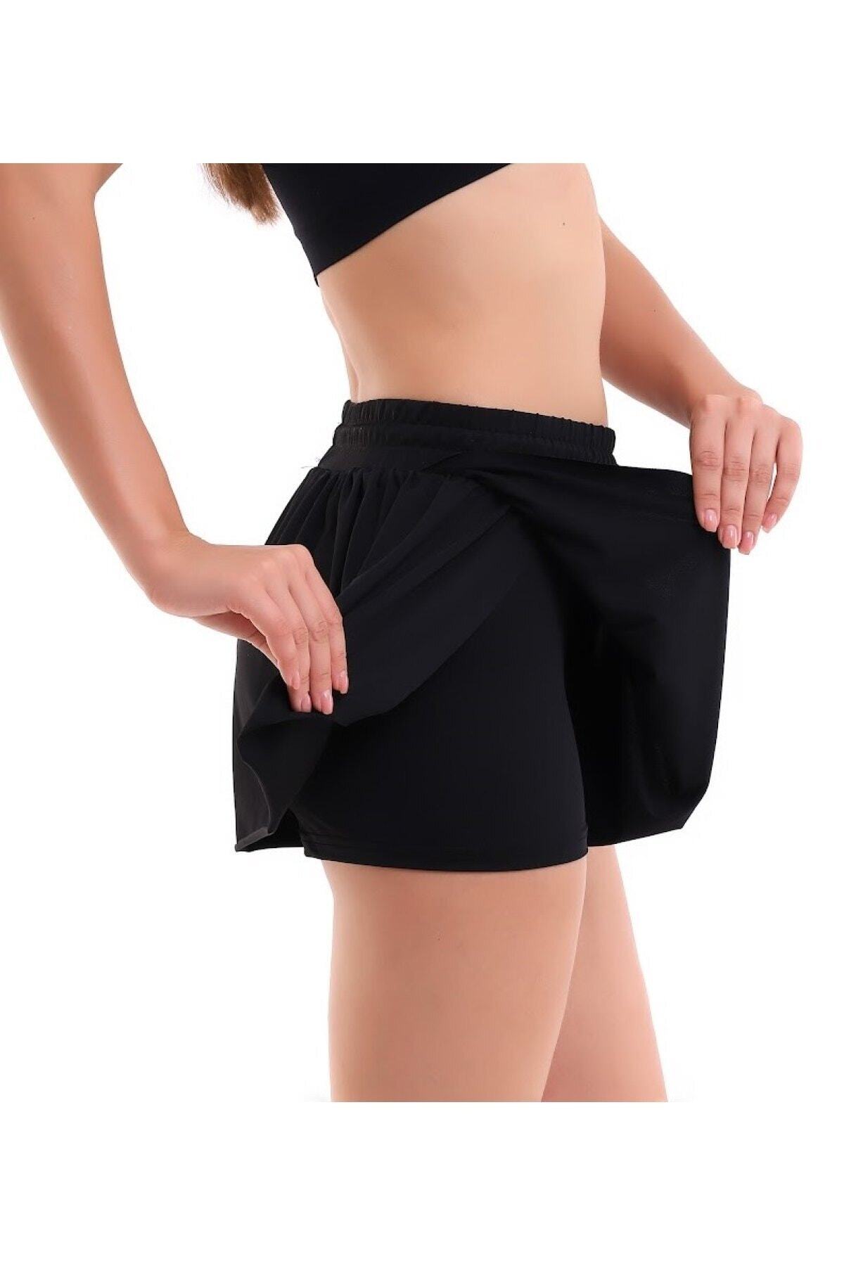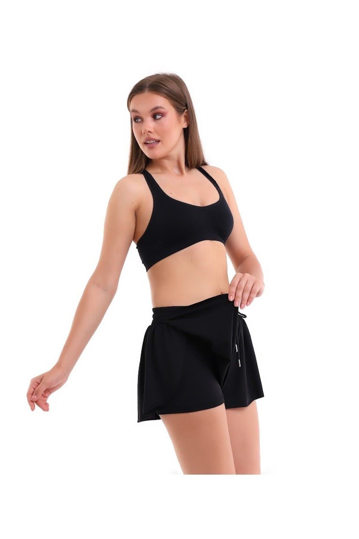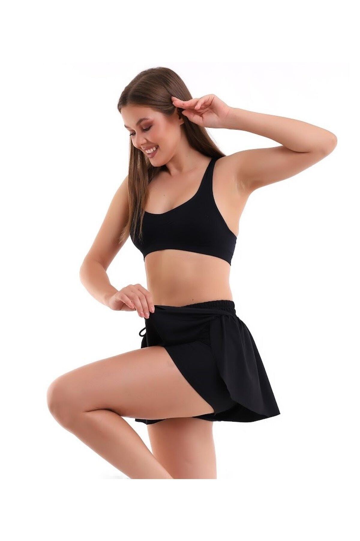 - Siyah renkteki bu spor şort etek, hem günlük kullanımda hem de özel günlerde rahatlıkla tercih edilebilir.