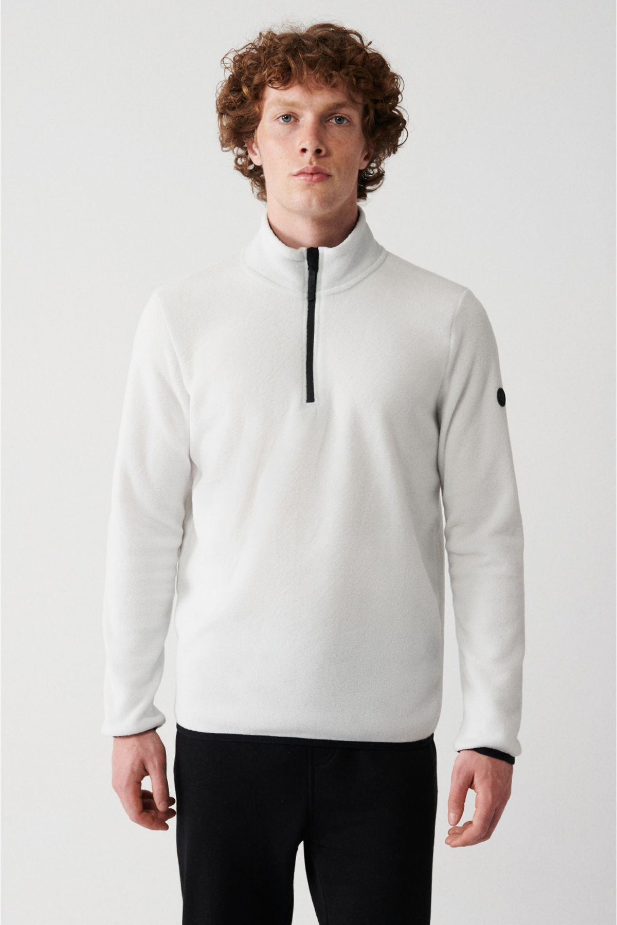 Dik Yaka, Yarım fermuar kapama, Soğuğa dayanıklı, Sıcak tutan, Yaka bitiminde fermuar garajlı, Sol kolda enjeksiyon kauçuk detaylı, Kol ve etek ucu lastik biyeli, Regular fit Standart kesim Polar Sweatshirt