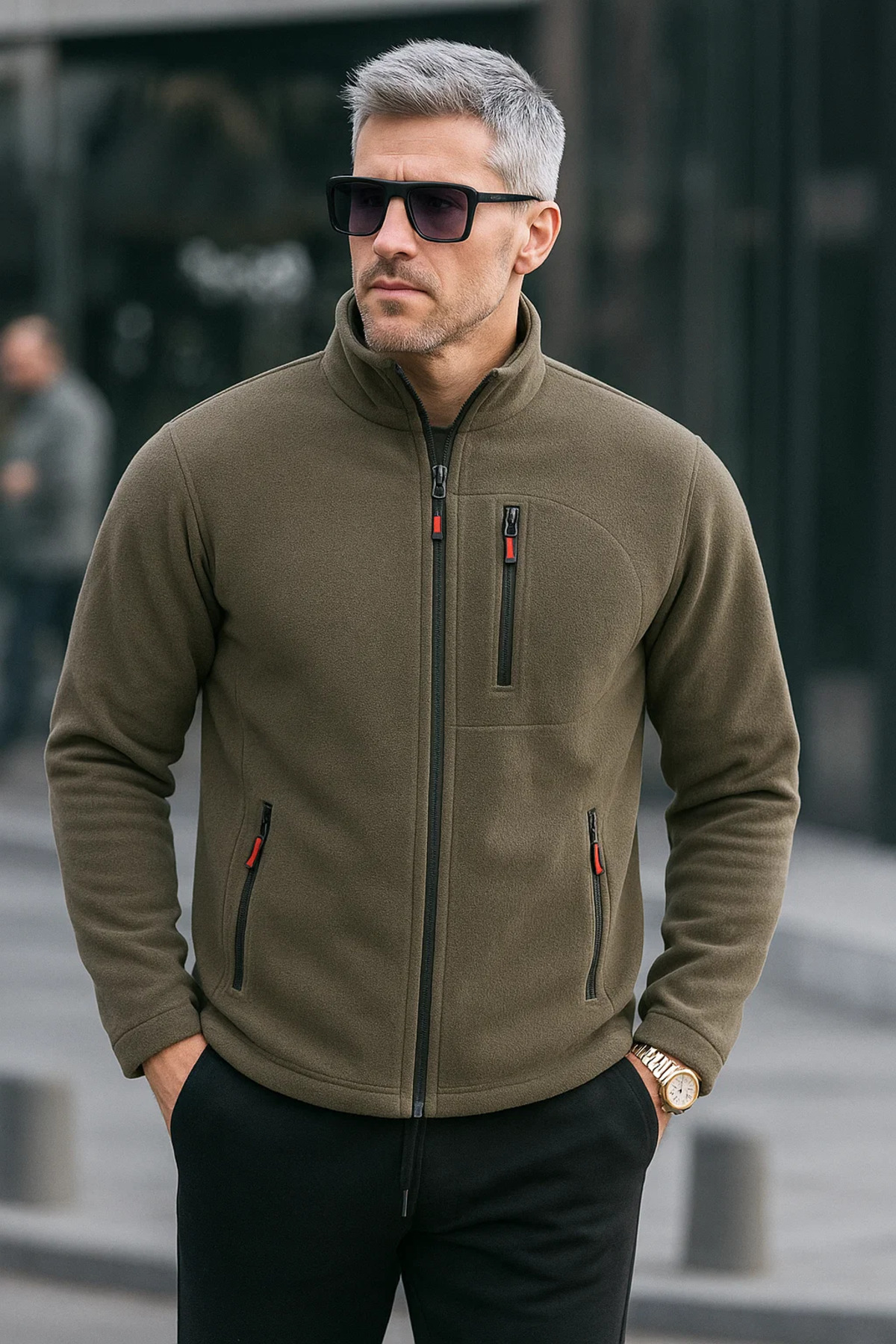 Erkek Tam Fermuarlı Göğüs Cepli Basic Kışlık Günlük Trend Rahat Uzun Kollu Salaş Pamuklu Dik Yaka Bol Polar Ceket Bu erkek ceket, soğuk kışlık günler için tasarlanmış, hem konforlu hem de modern bir parçadır.