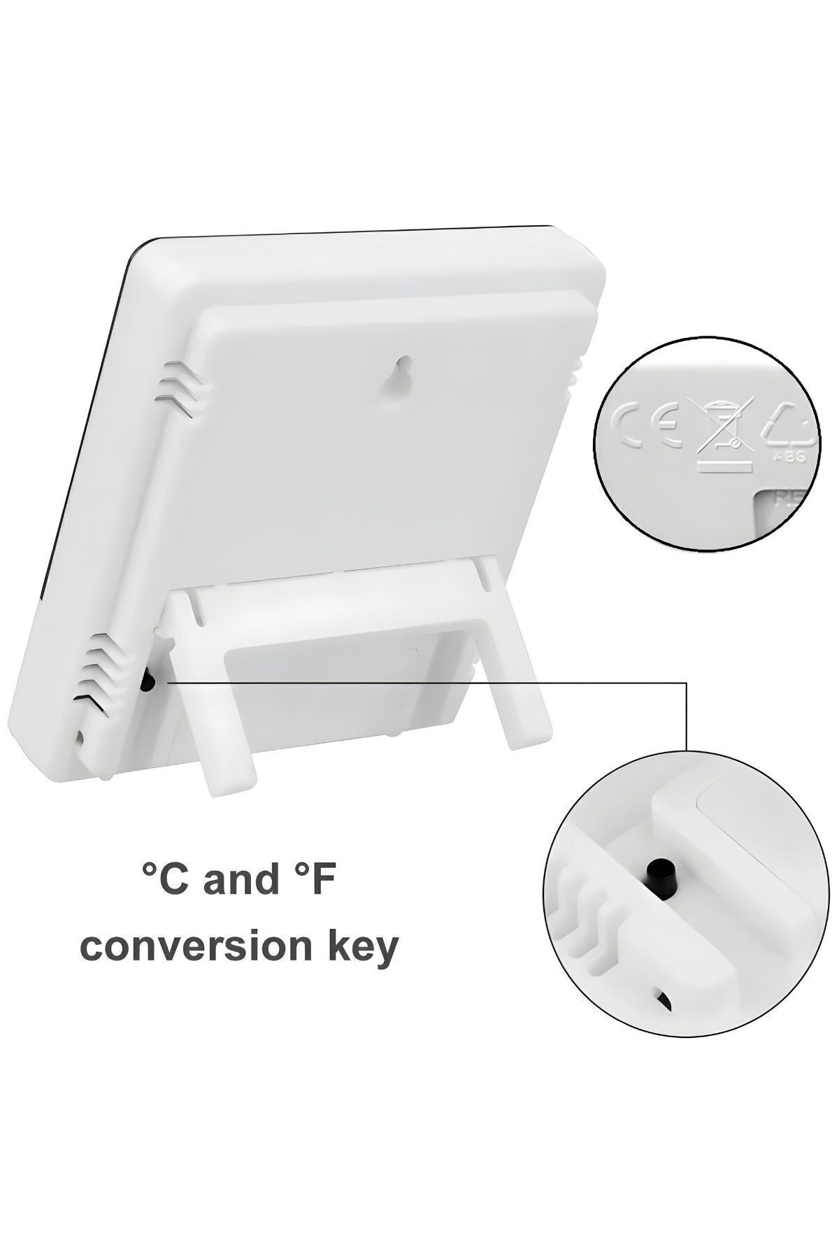 Oda, araba, kümes, buzdolabı gibi alanlara uygundur -10°C ~ 50°C sıcaklık ölçüm aralığı Maksimum-minimum kayıt özelliği Alarm ve takvim ile işlevsellik Beyaz plastik tasarım