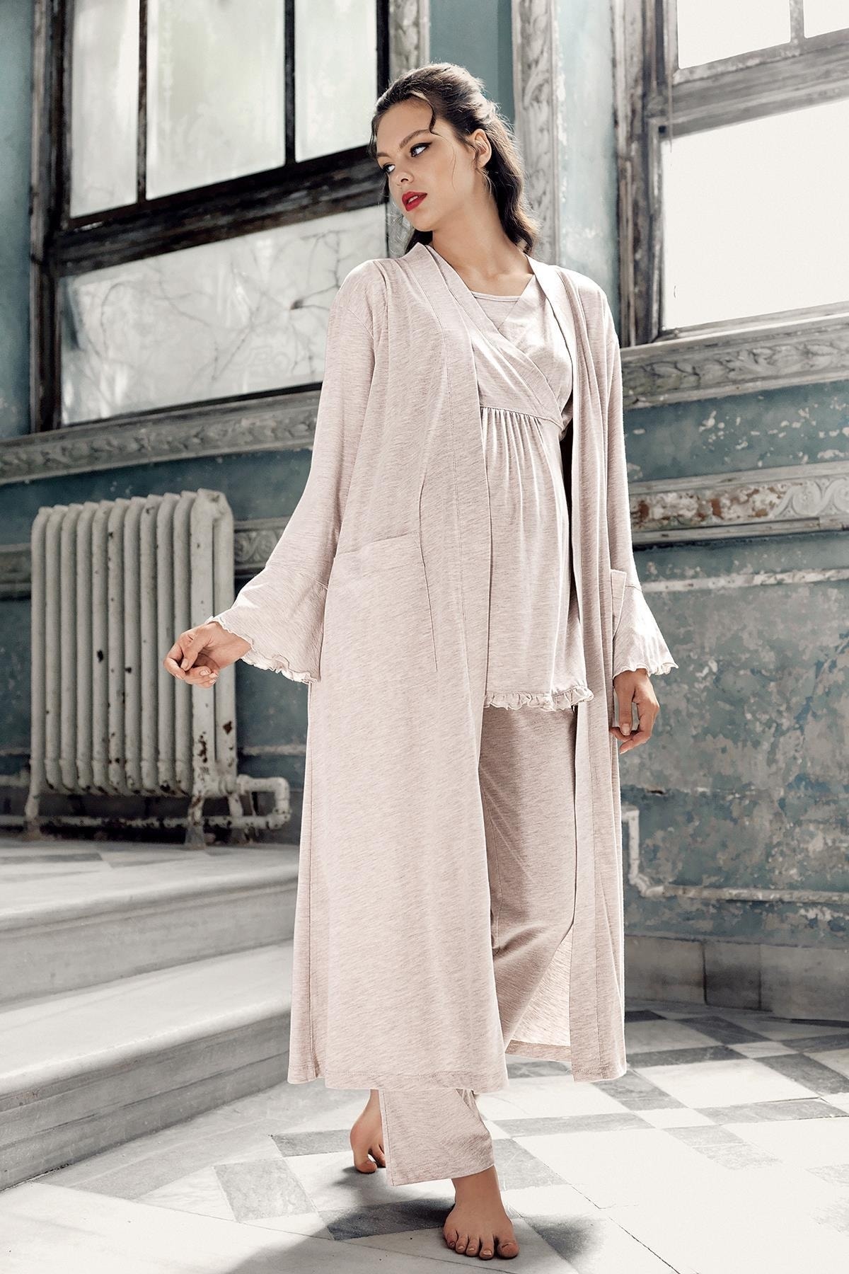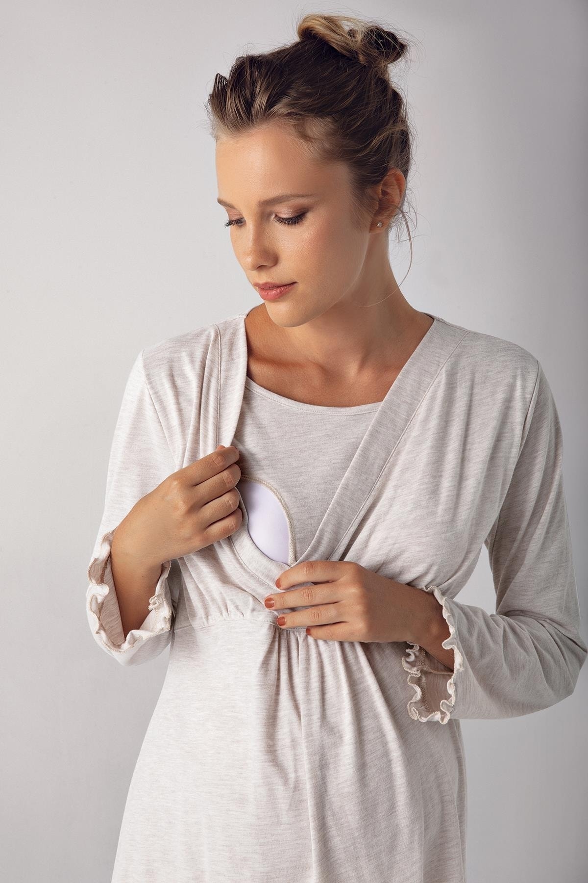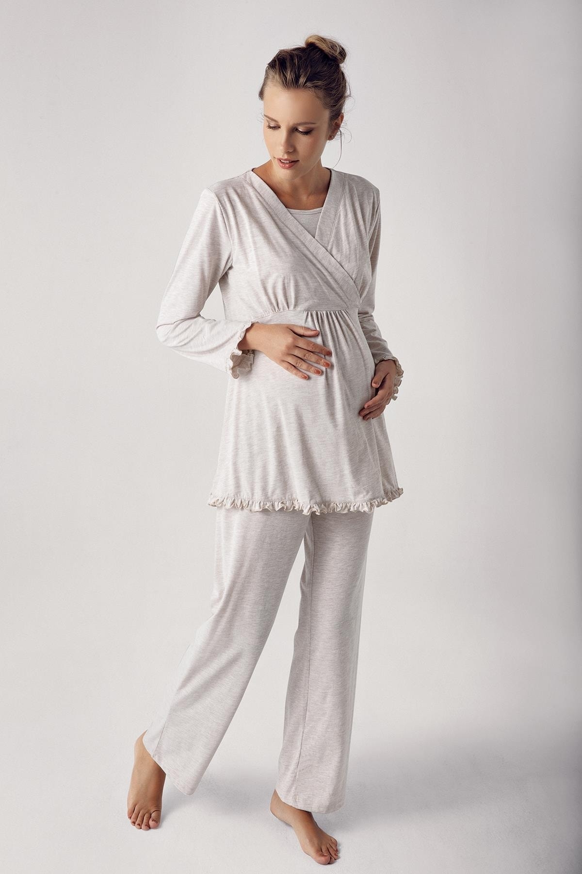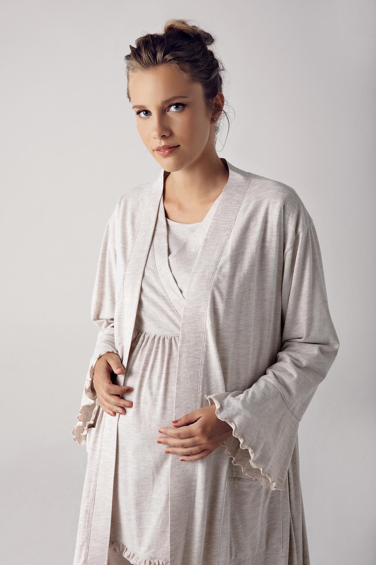 Kadın Uzun Kollu Esnek Pamuklu Hamile Sabahlık Pijama Takımı13300