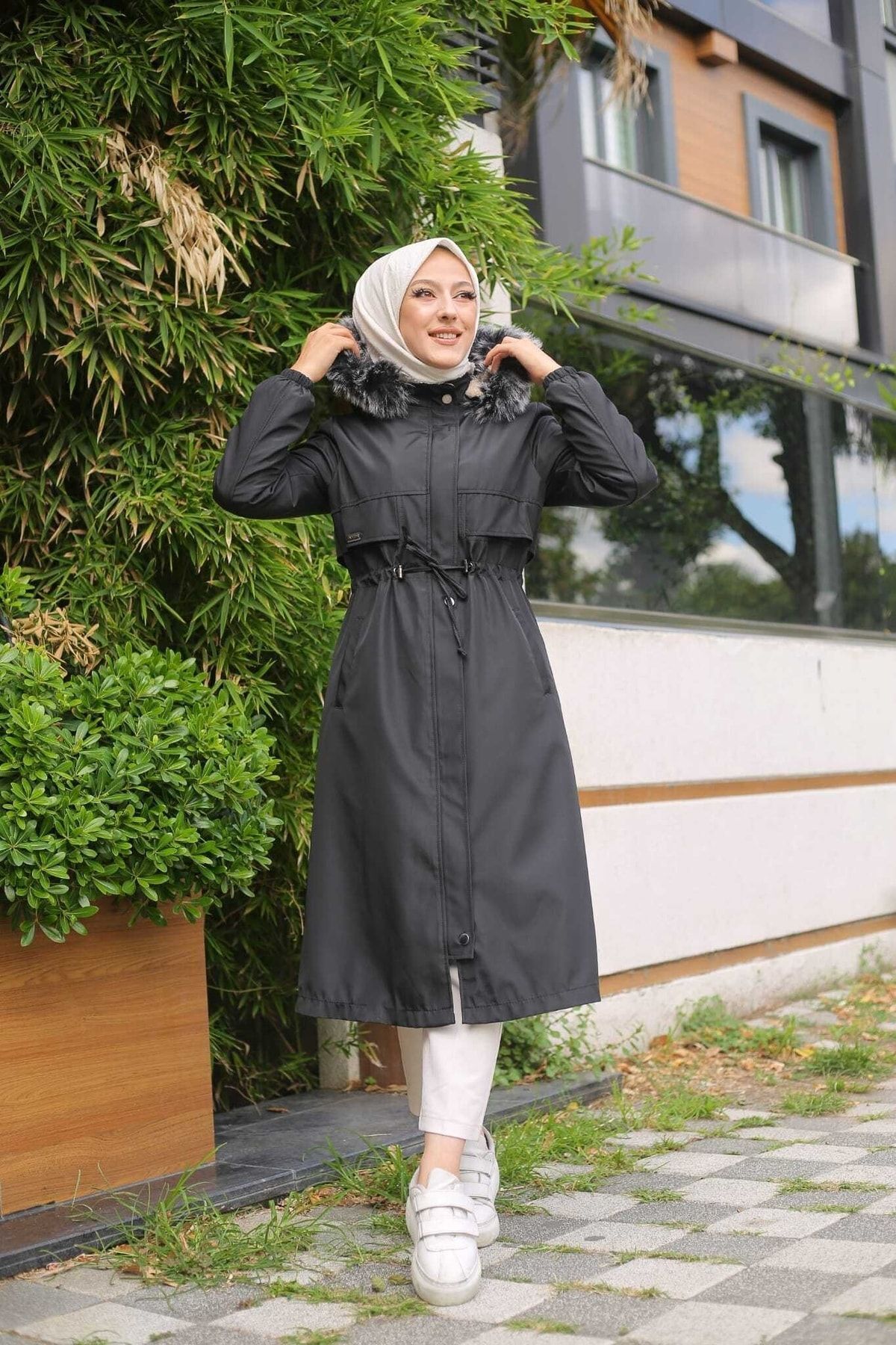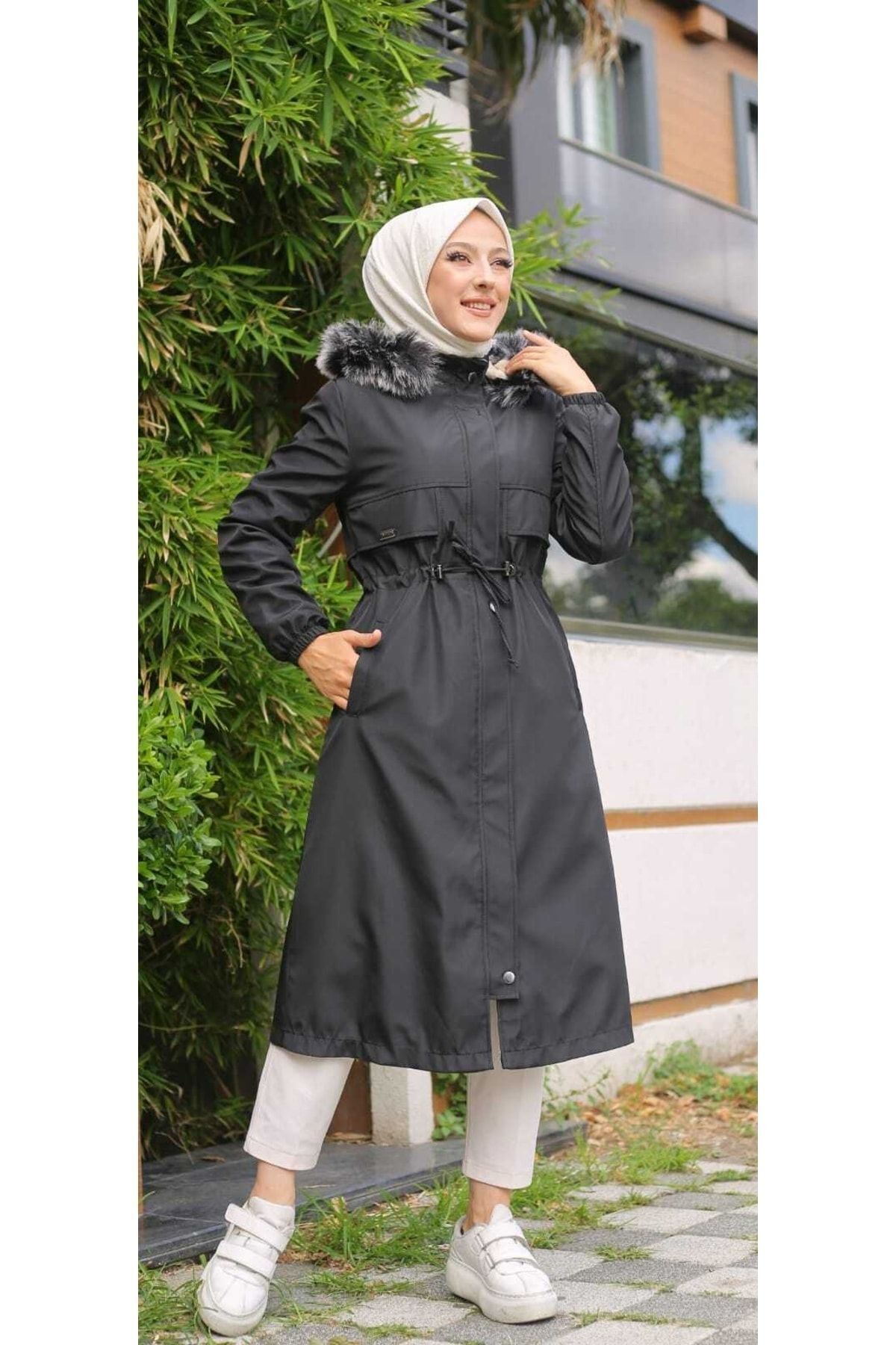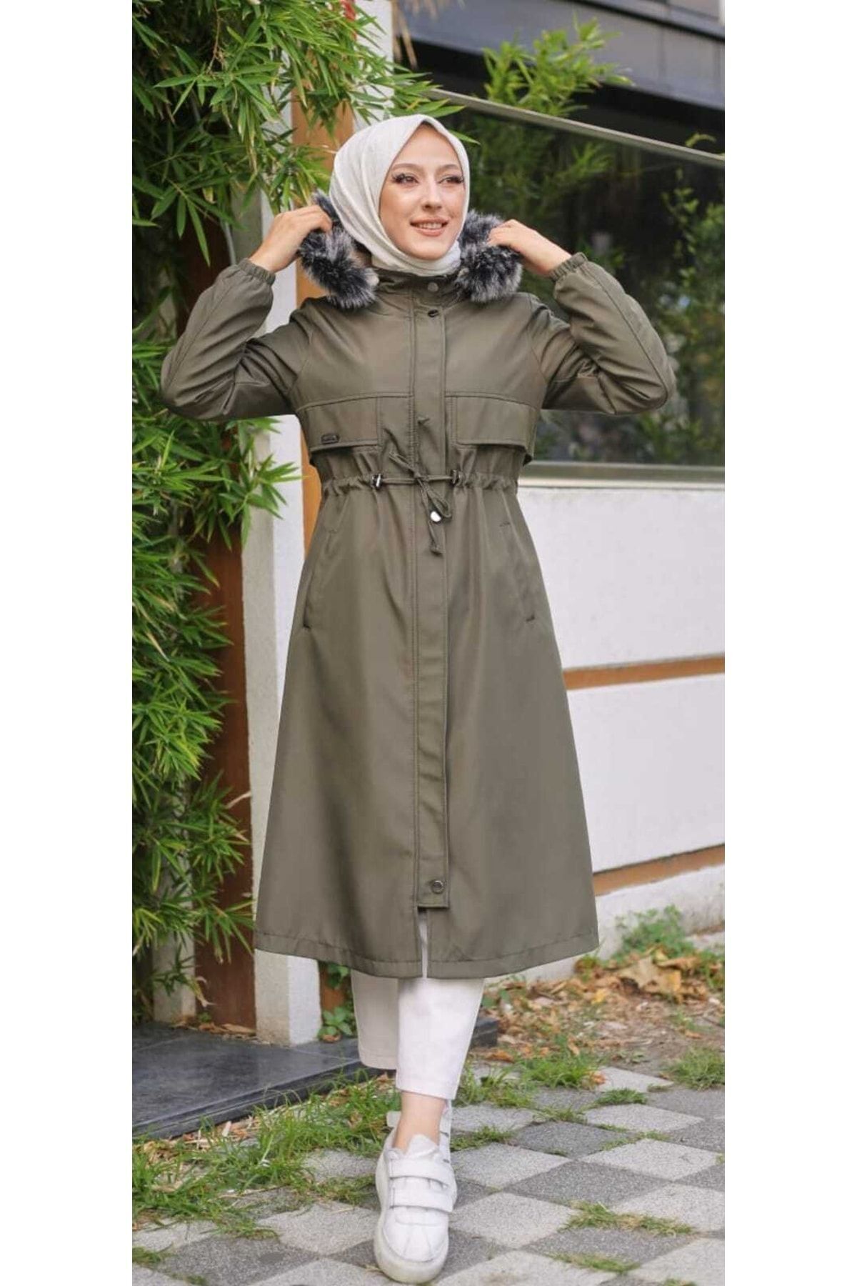 Kapüşonlu yaka tipi baş ve boyun bölgenizi soğuktan korurken, düz deseniyle zamansız bir stil sunar
