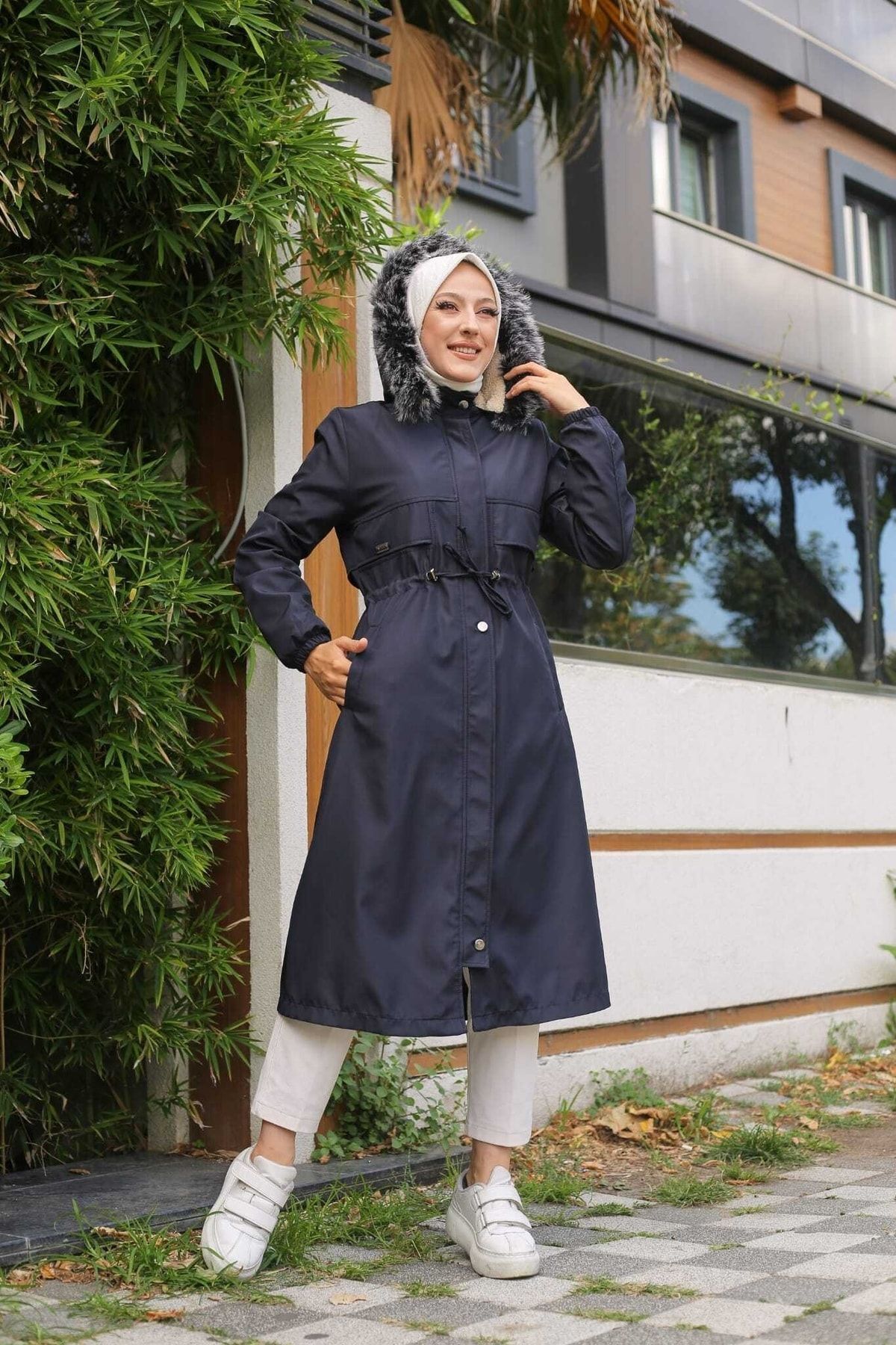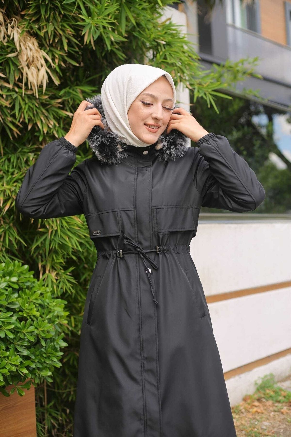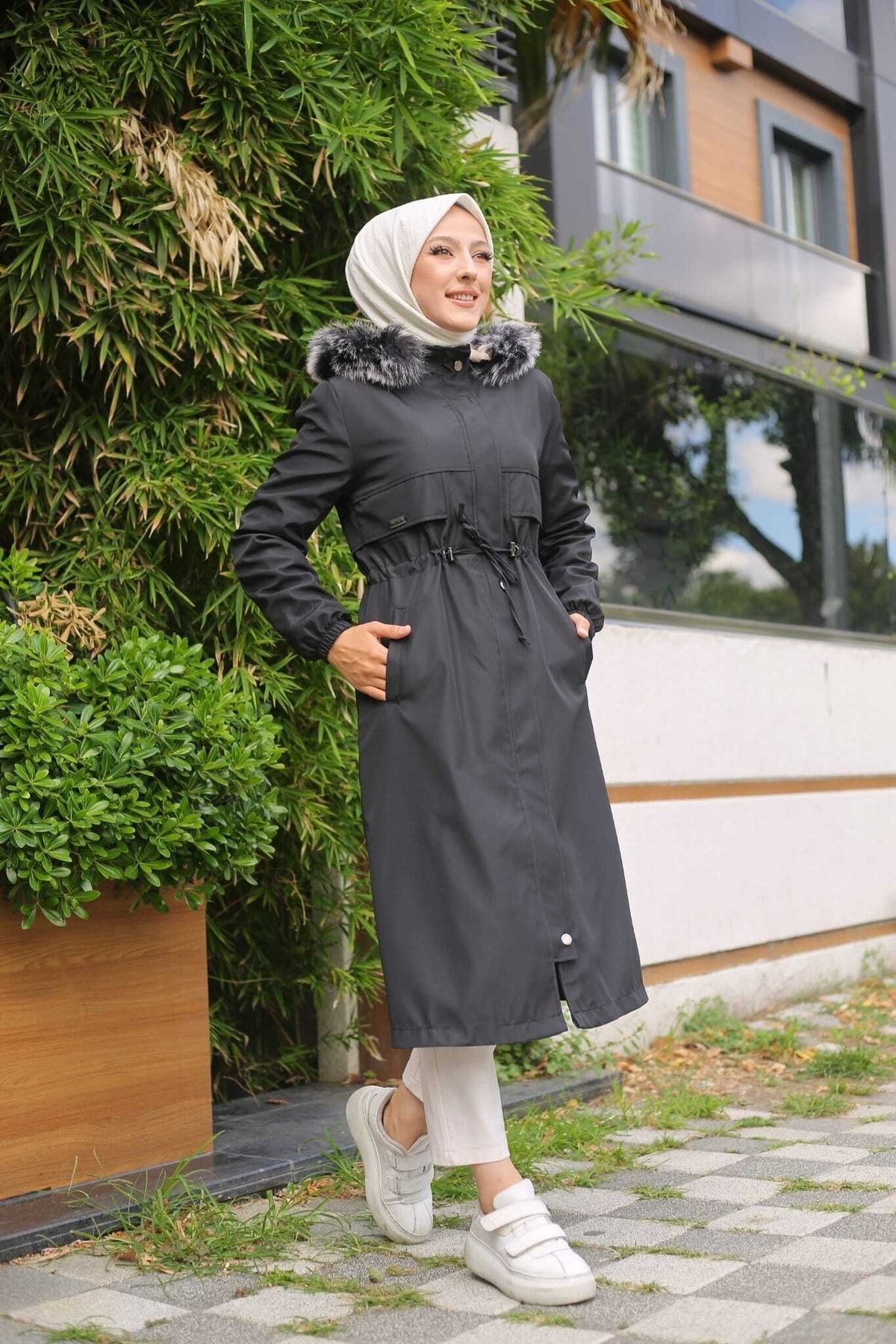 Kapüşonlu yaka tipi baş ve boyun bölgenizi soğuktan korurken, düz deseniyle zamansız bir stil sunar