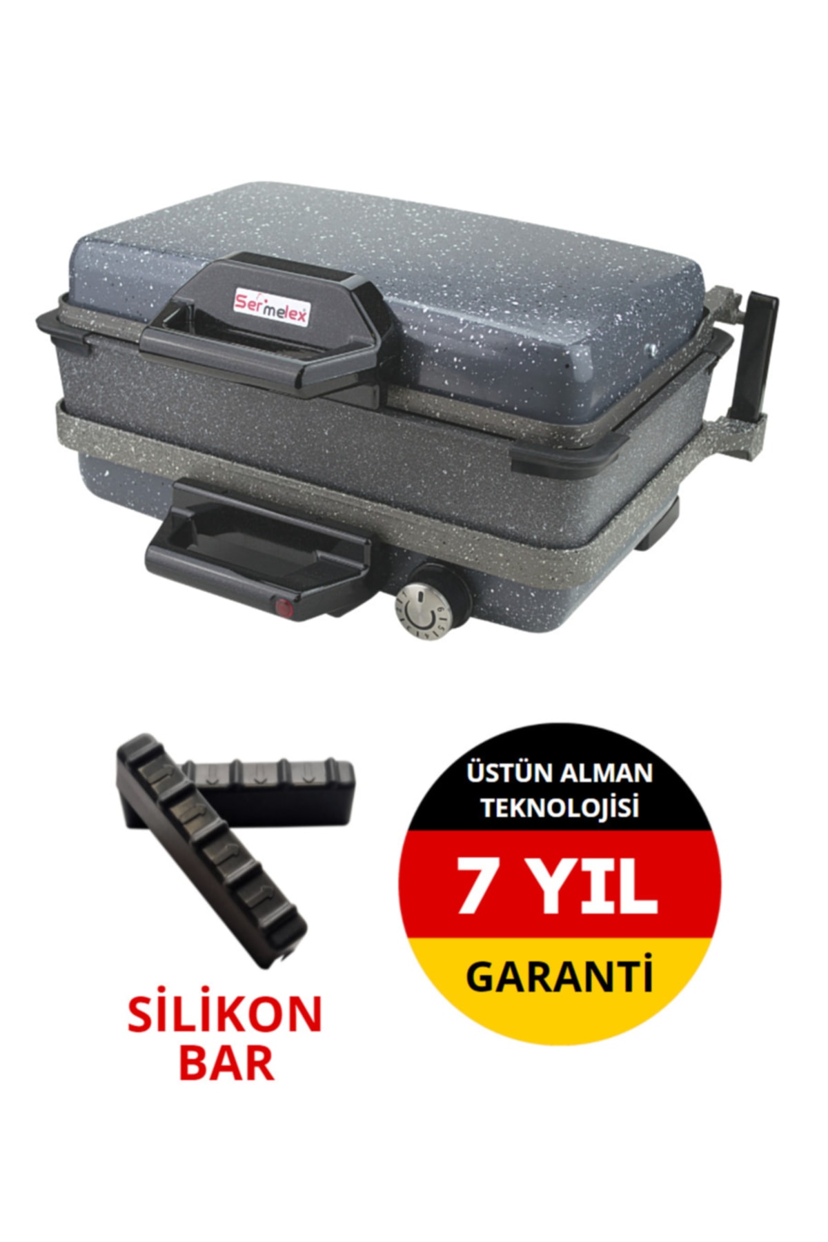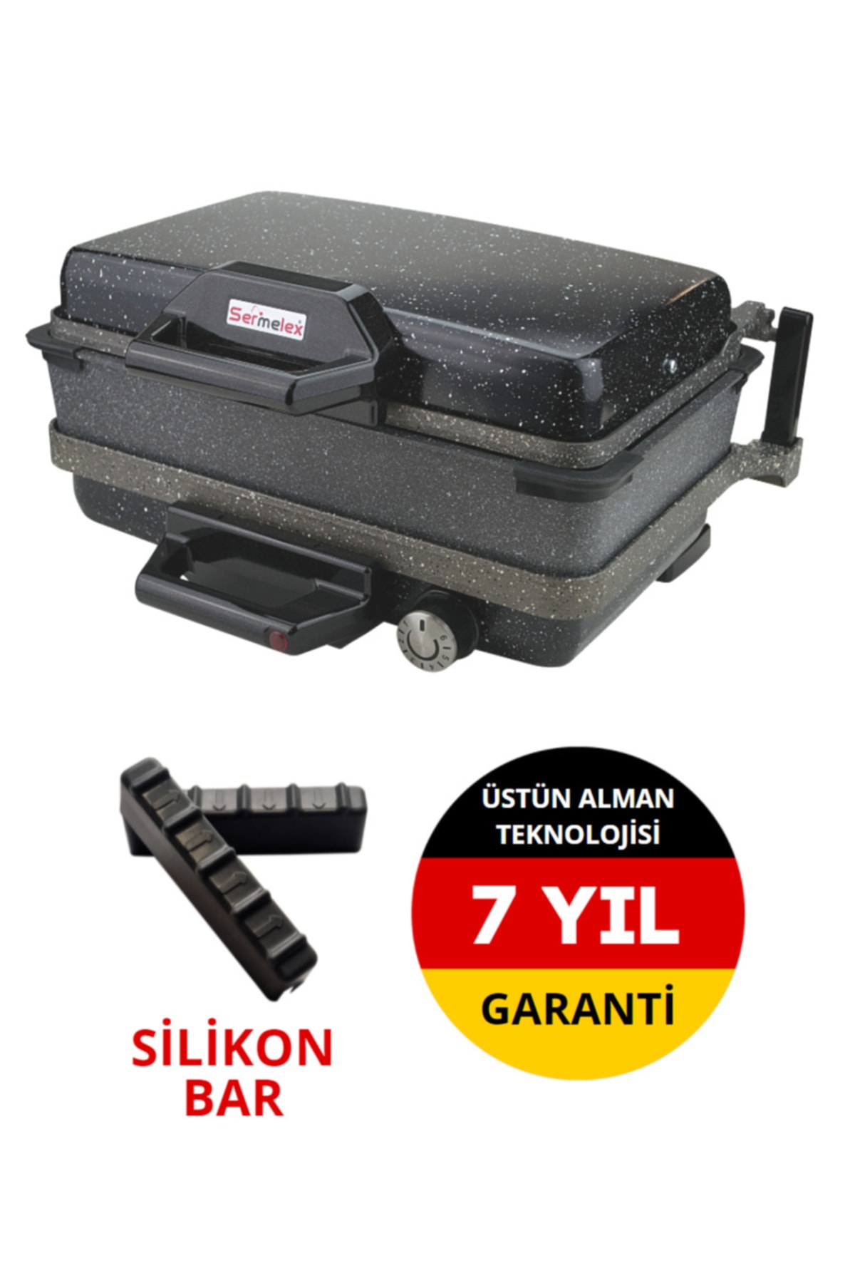 Çift yönlü plaka kullanımına sahip Sermelex Turbo Granit Grill sizlerin çeşitli pişirme yöntemlerini tercih etmesine olanak tanır.
