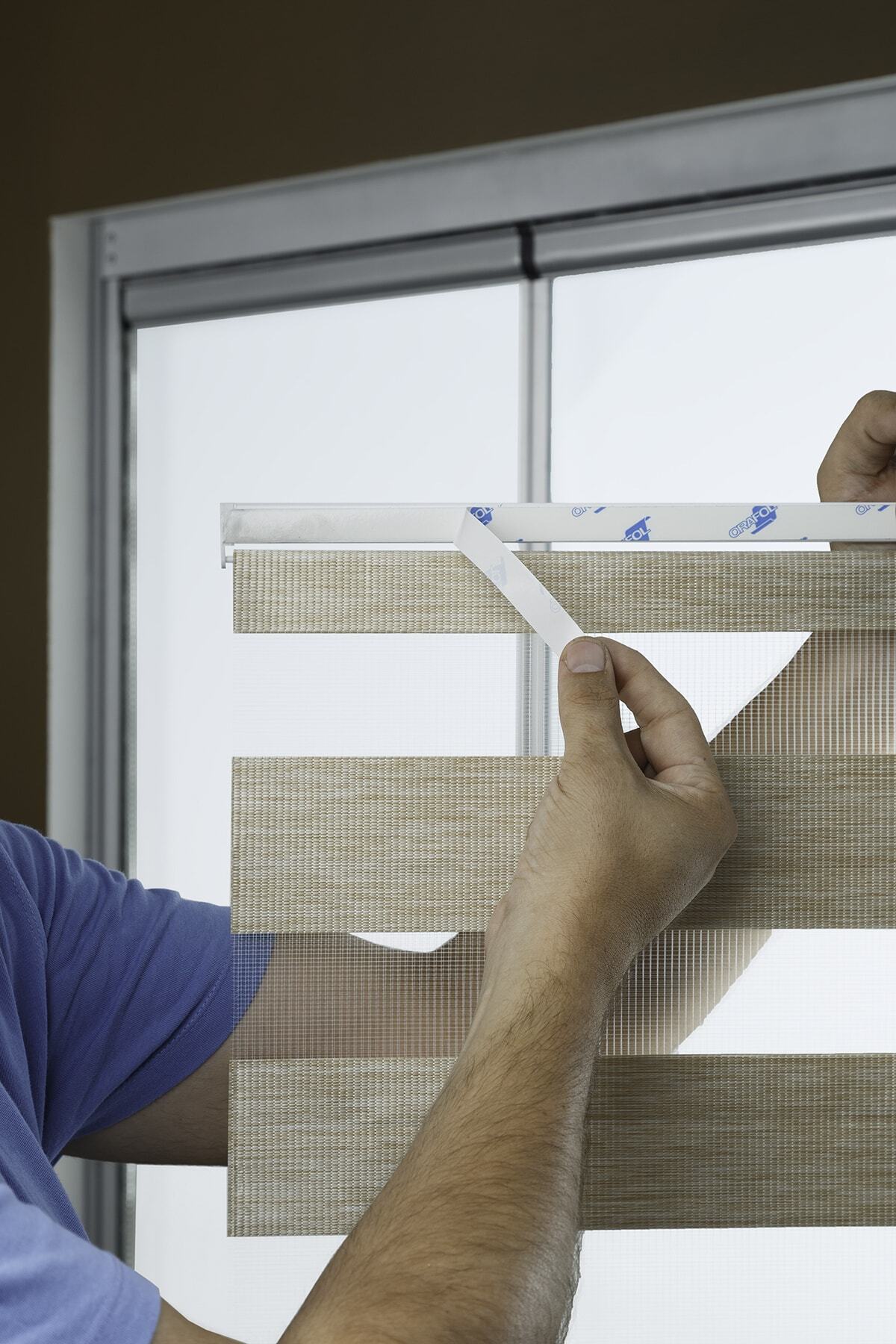 Perdenin Alt ve üstü cama yapıştırmalı çıta ile sabittir.