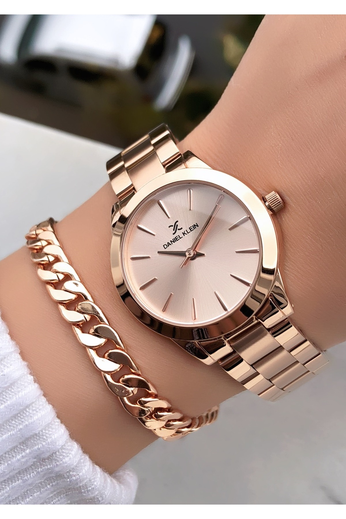 - Rose gold rengiyle modern ve sofistike bir görünüm sergileyen kadın/kız modeli, her tür kıyafetle kolayca kombinlenebilir.