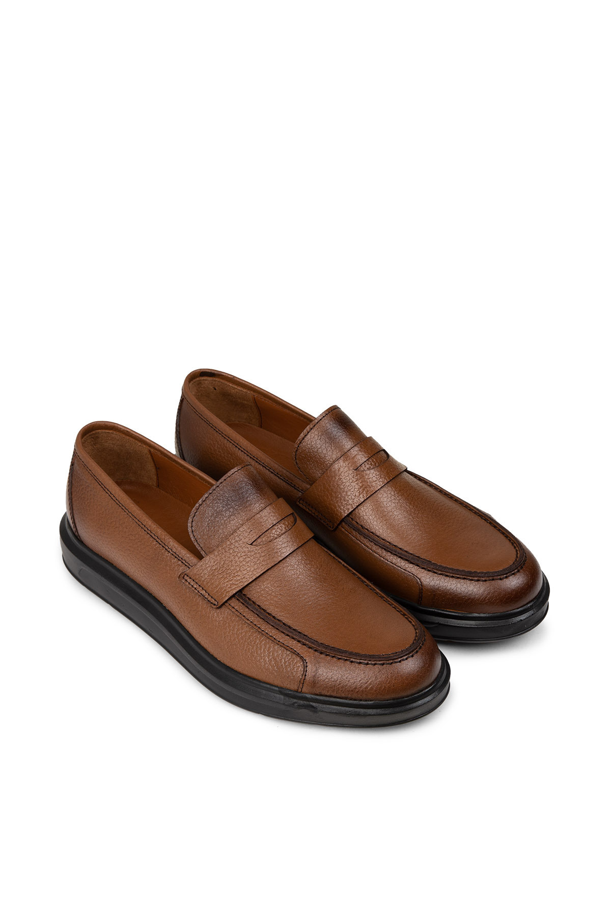 100% Doğal Dana Derisi, Poliüretan Taban, Kahverengi Erkek Loafer Ayakkabı