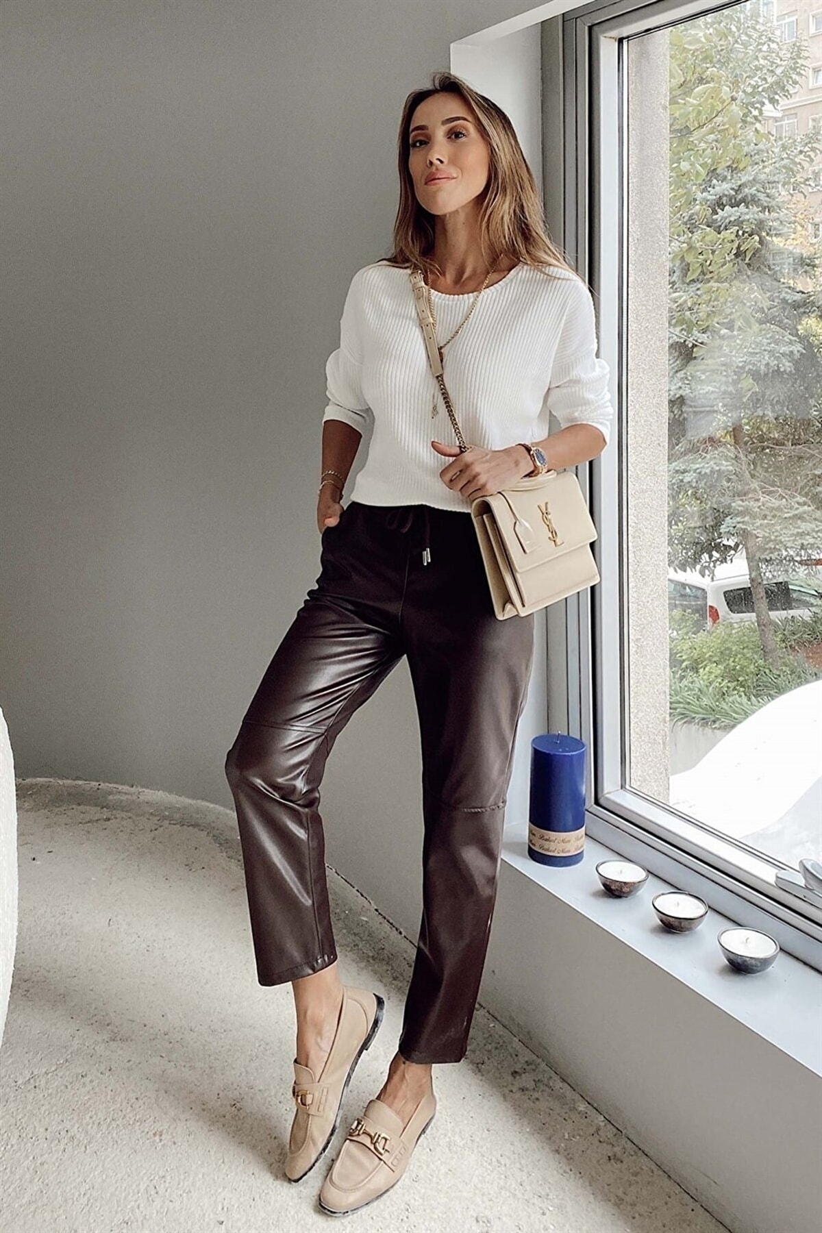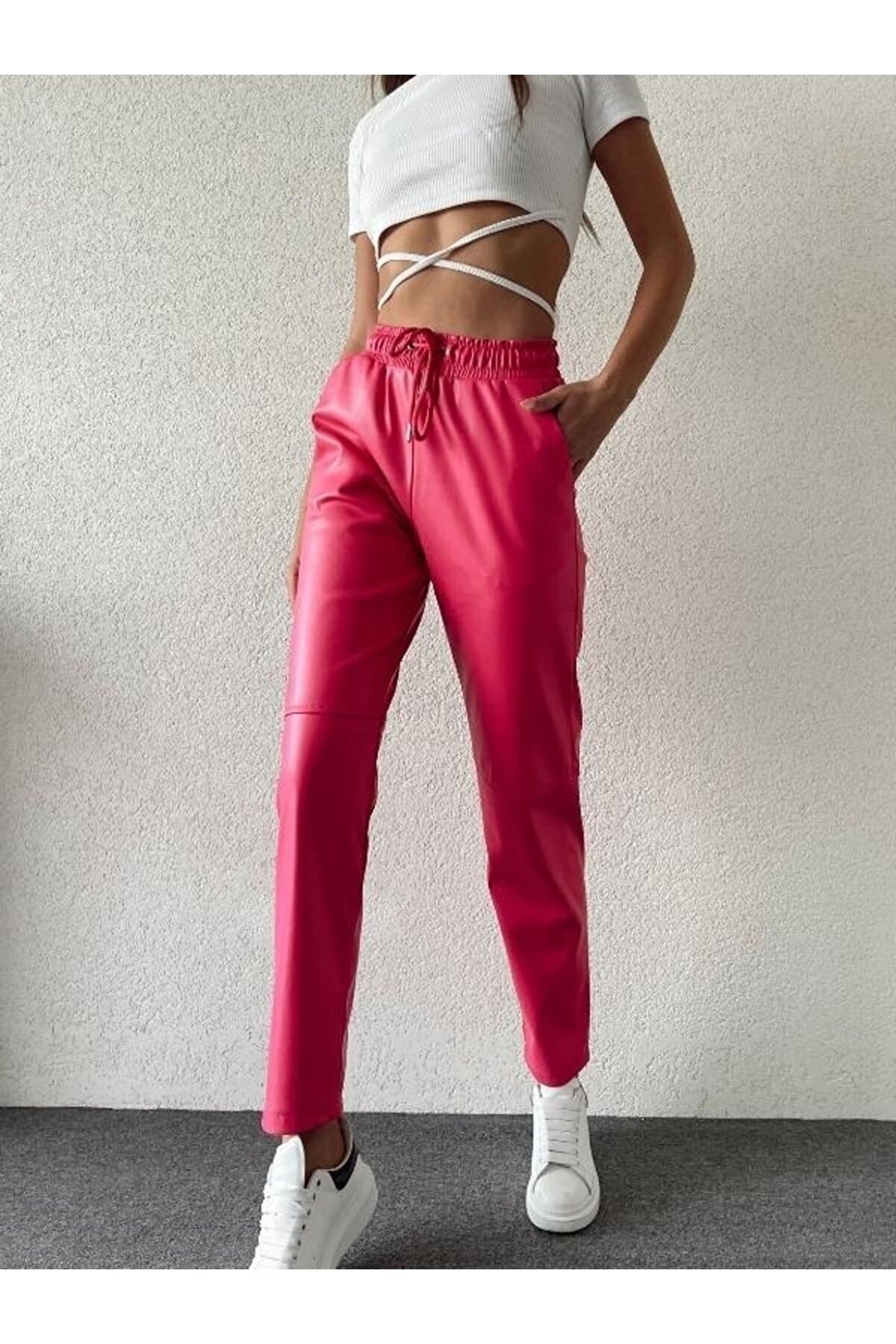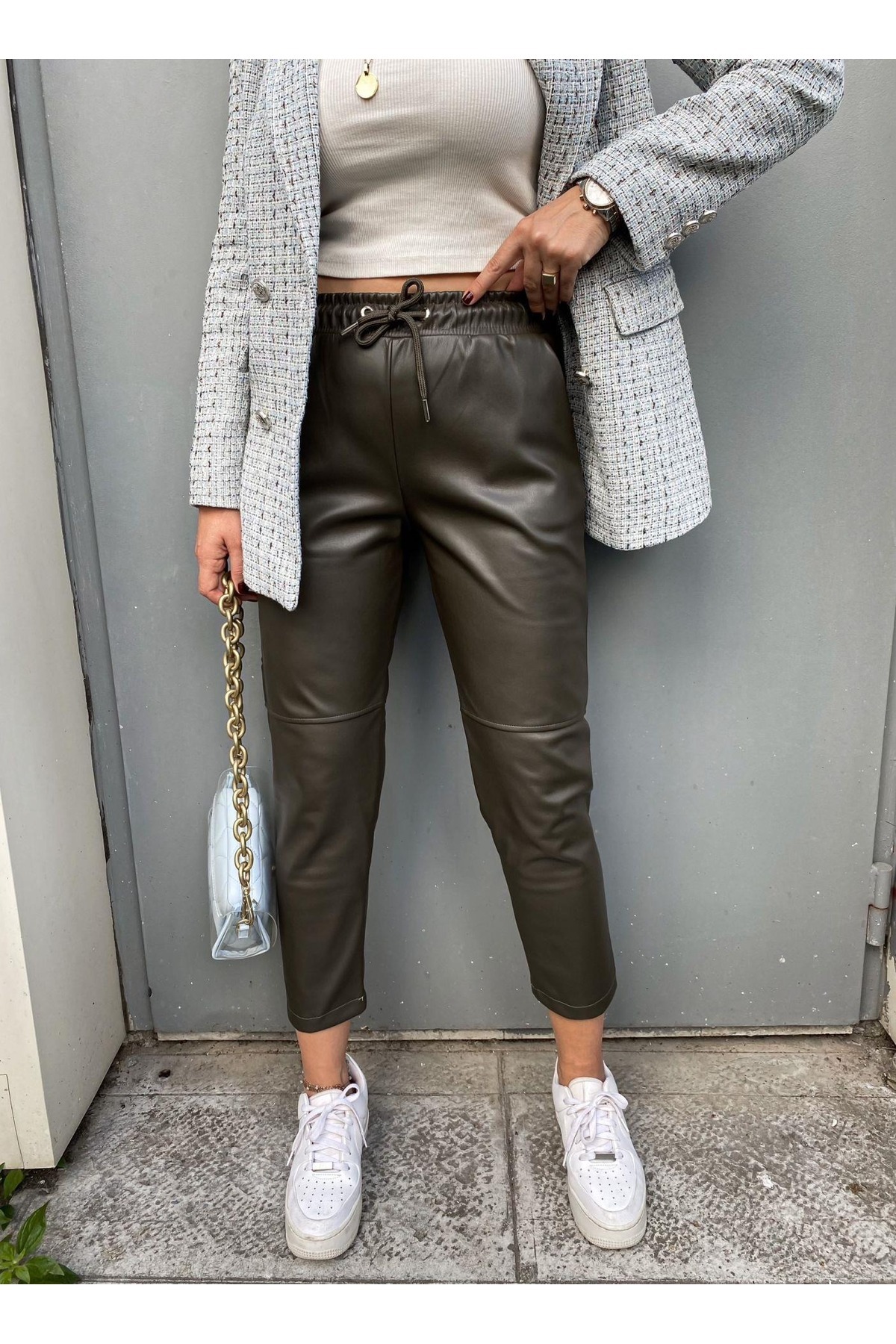 Suni deri detayları ile dikkat çekici bir stil oluştururken esneklik ek özellik olarak öne çıkar