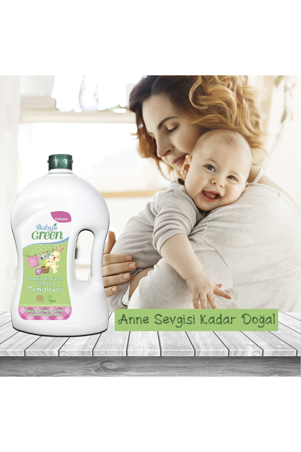 2'li Set ORGANİK ALOEVERALI BEBEK ÇAMAŞIR TEMİZLEYİCİ 1,5 Litre *2 - 80 YIKAMA - KOKUSUZ Baby’s Green Organik Aloeveralı Çamaşır Deterjanı hijyen sağlar ve bitkisel ham maddeler içeren formulü sayesinde tüm ailenizin çamaşırlarındaki inatçı kir ve lekeleri temizler.