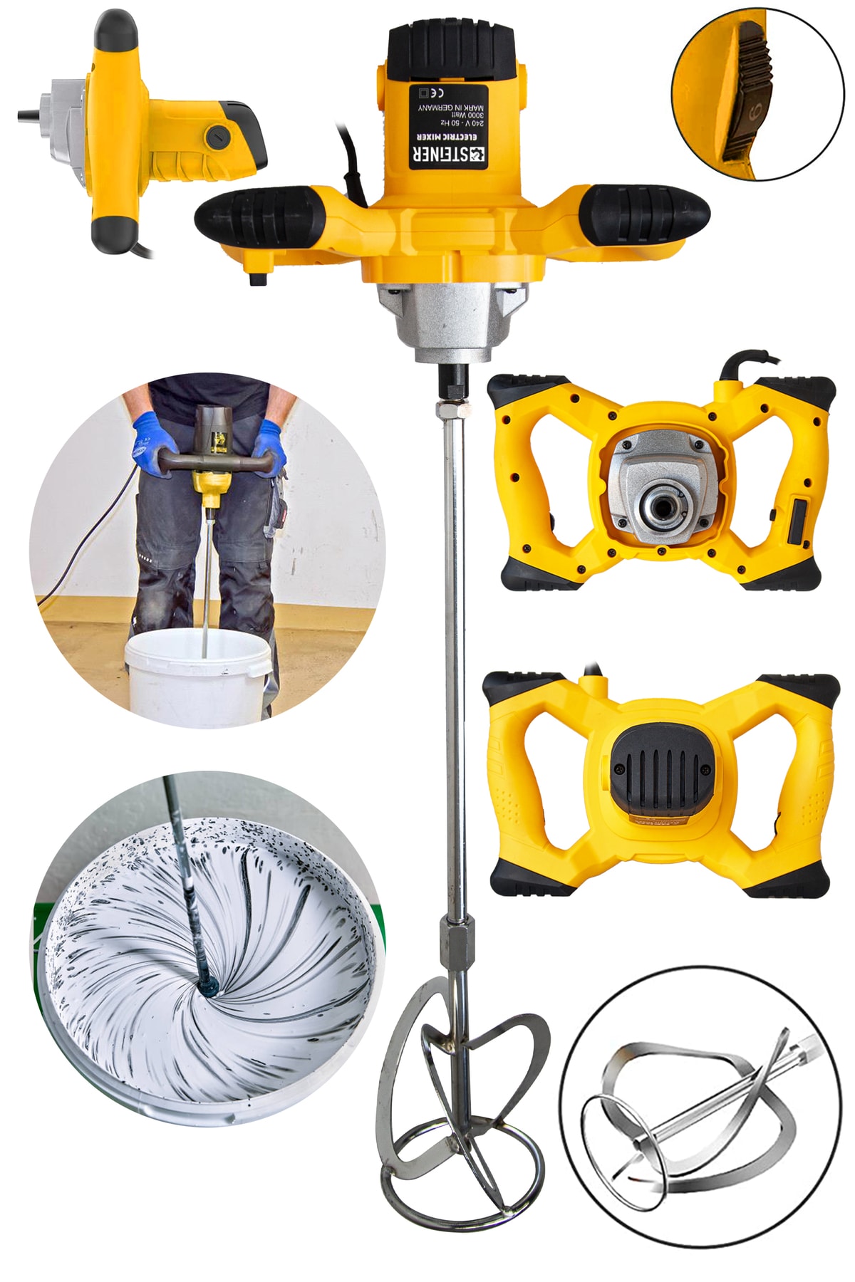 Alman gt-Sarı 3000 bakır sargı 6 kademe devir ayarlı elektrikli alçı boya ve harç karıştırıcı mikser.