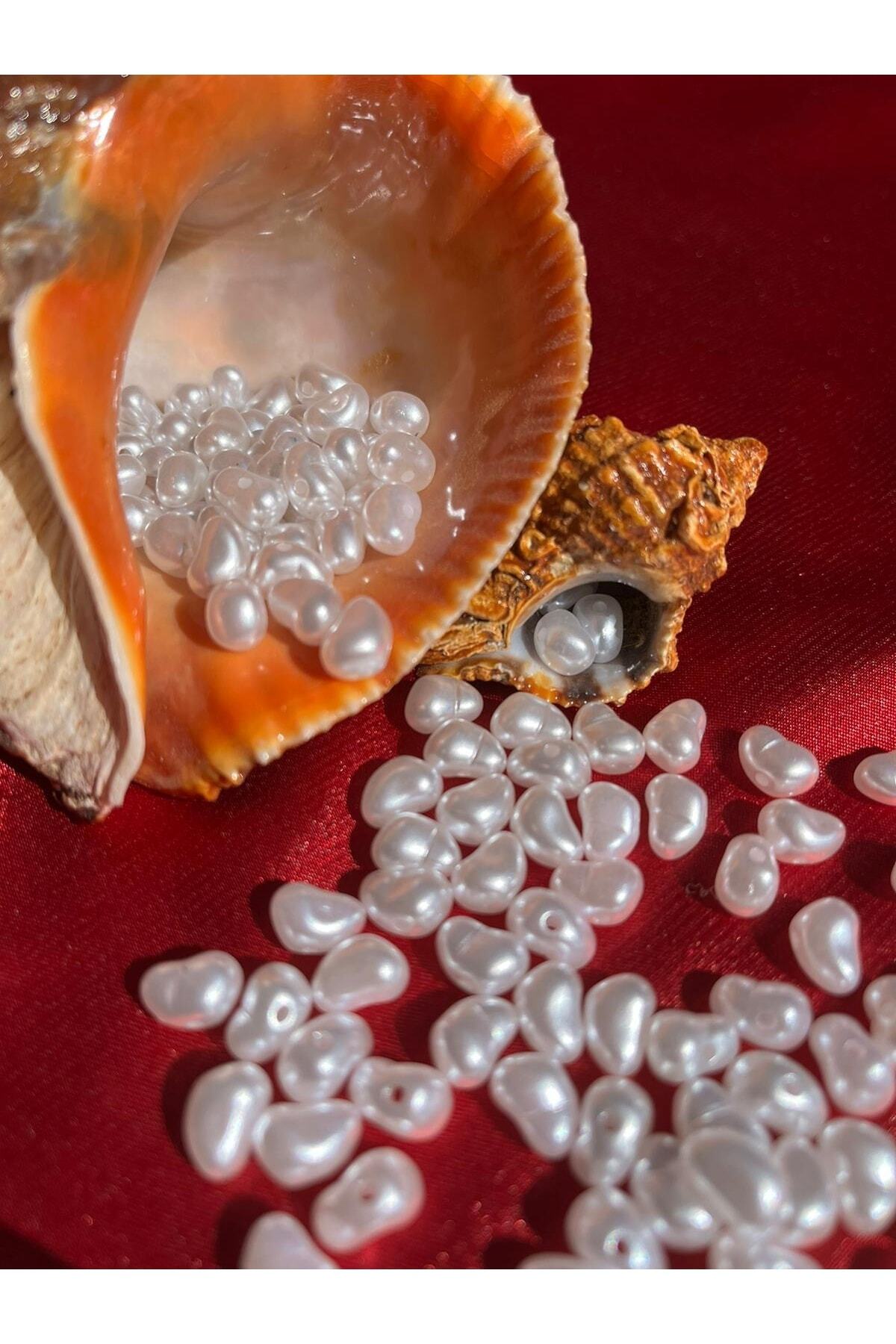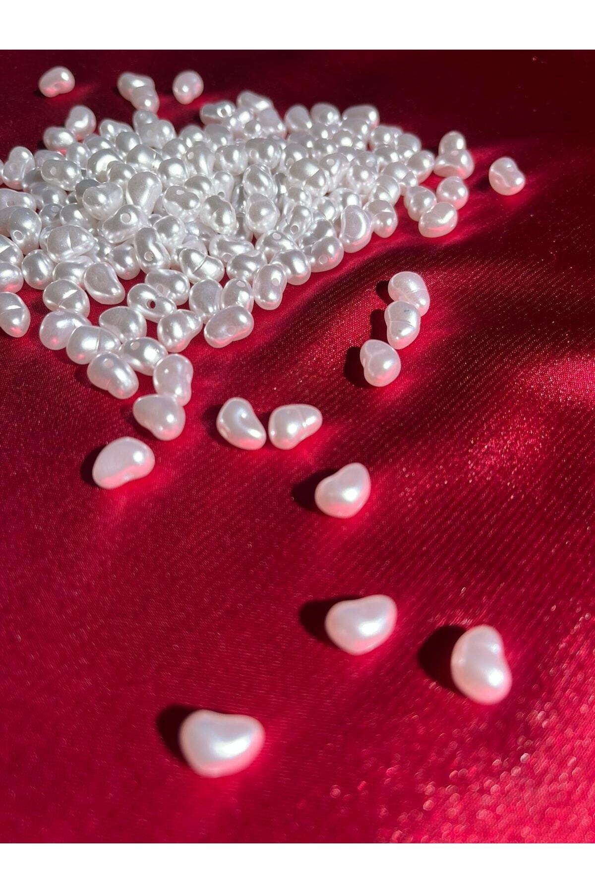50 Gr Beyaz Renk Yamuk Inci Boncuk, Kalpli Inci (240-260 Adet)