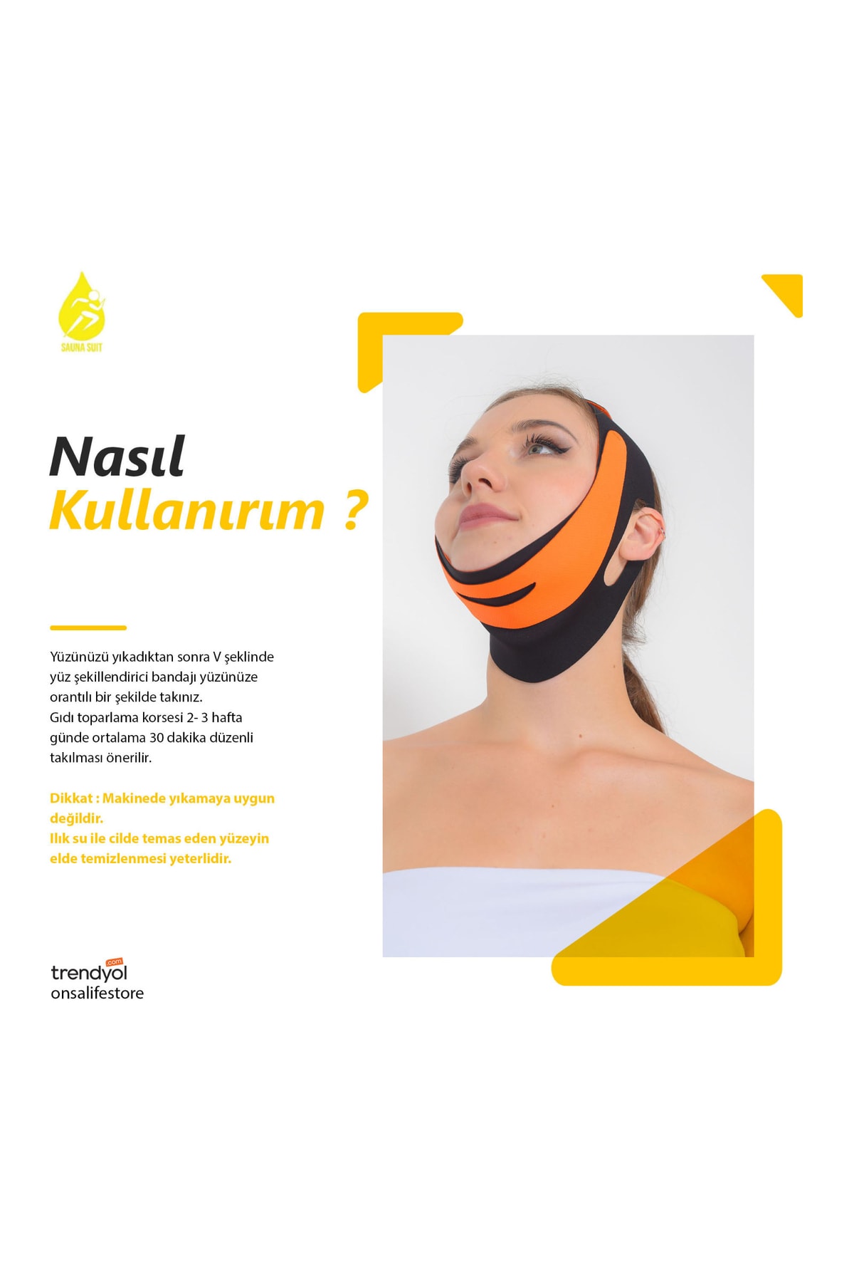 Kullanım şekli: Yüzünüzü yıkadıktan sonra v şeklinde yüz şekillendirici bandaj ı yüzünüze muntazam bir şekilde takınız. 15-30 dk arası bekledikten sonra yüzünüzden çıkartıp ılık su ile tekrar yıkayınız.