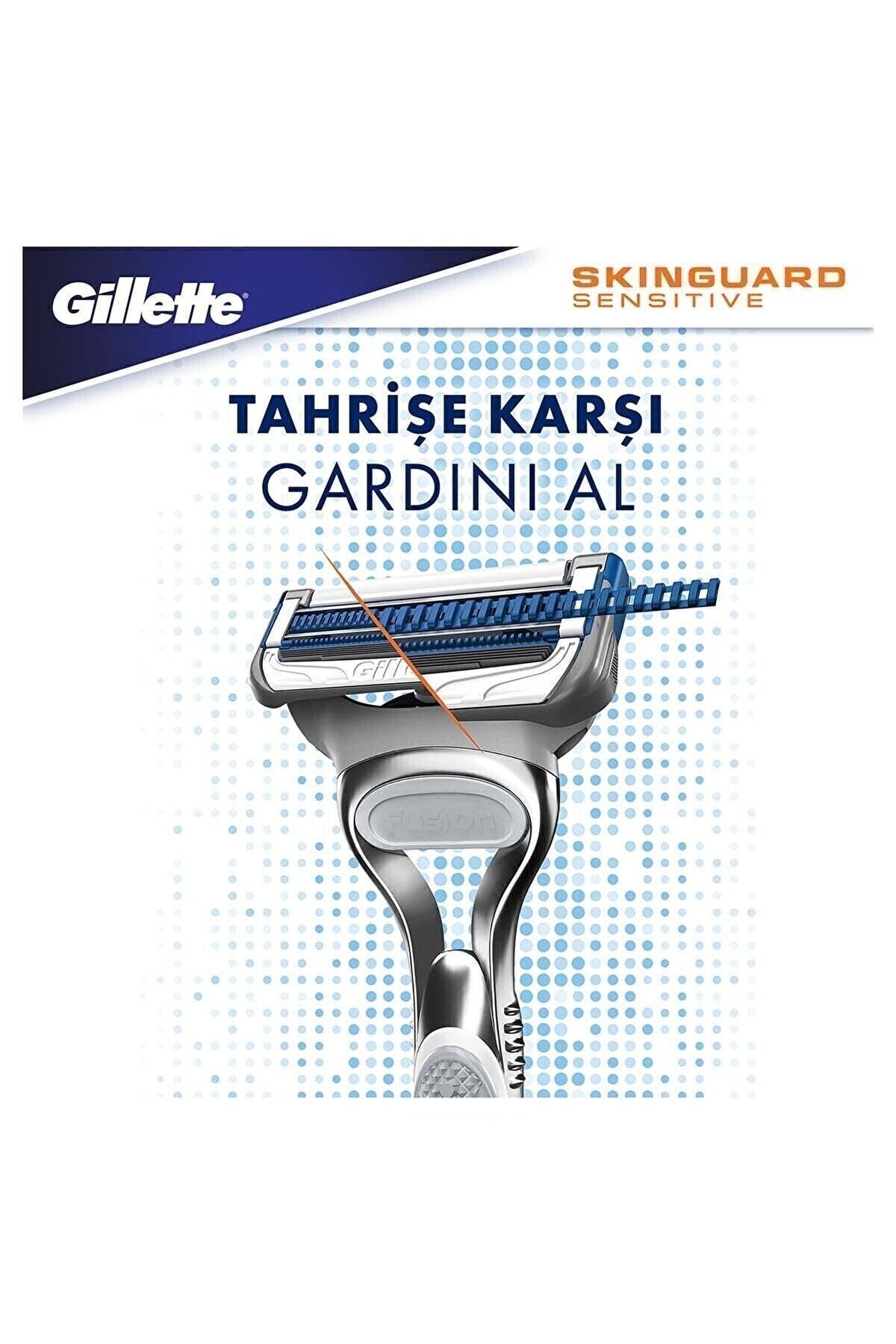 Tahrişi önlemek için tasarlanmış Erkek Tıraş Makinesi Cilt temasını en aza indirmek için bıçakları kaldırır Hassas ciltler için klinik olarak test edilmiştir Kayganlaştırma ile cilt tahrişinden korur Tüm SkinGuard Sensitive ve Fusion yedek bıçaklarına uyar
