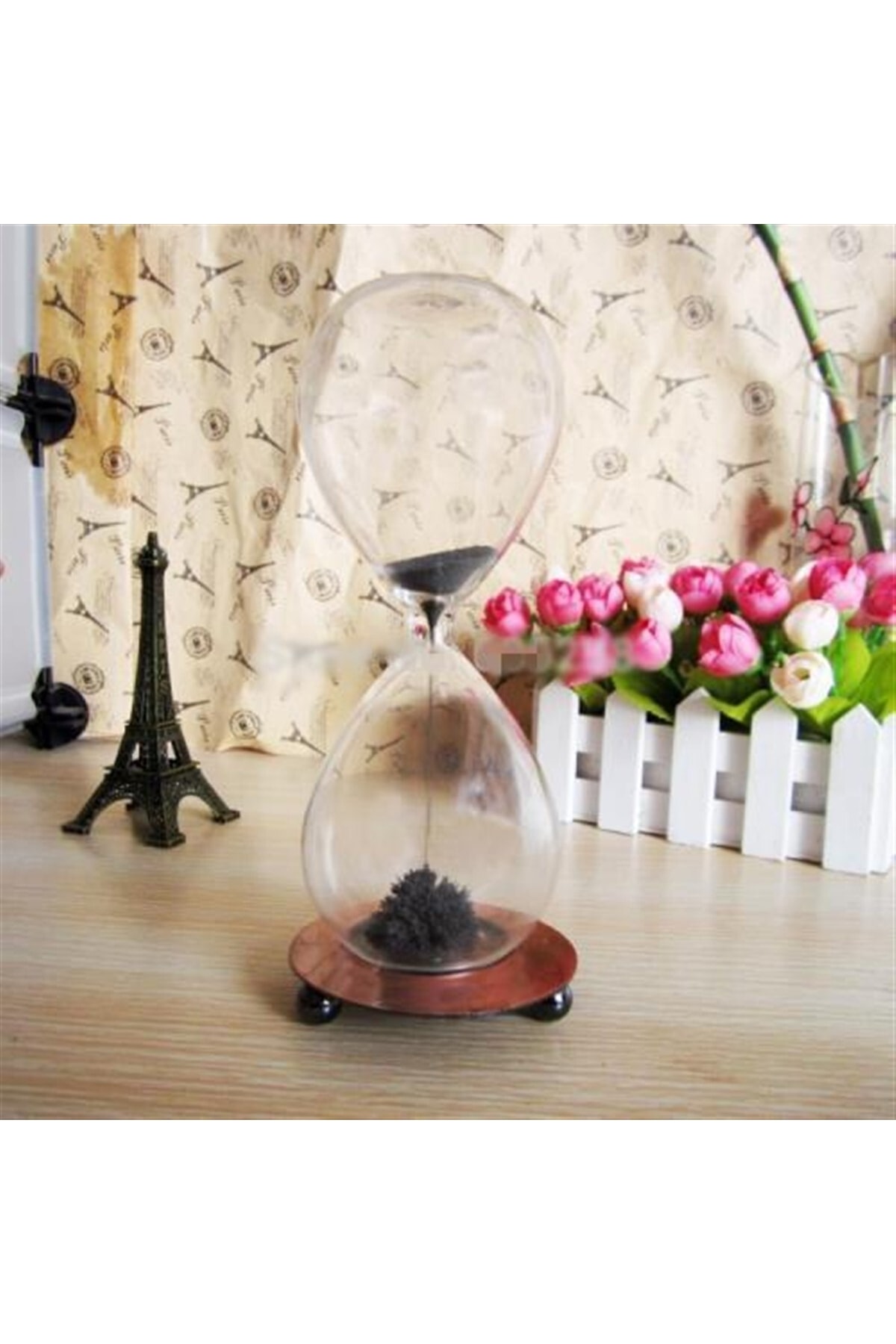 Evinizin, ofisiniz vazgeçilmez aksesuarlarından olan kum saatler, manyetik kum saatler ile görenleri hayrete düşürecek! Mıknatıslı standı ve manyetik siyah kumları ile aktığı her saniye görsel şölene dönüşecek. Gözünüzü kırpmadan izleyeceksiniz. Ister bir dekor olarak, isterseniz sevdiklerinize hediye olarak kullanabilirsiniz. Paket içeriği 1 adet kum saati fanusu