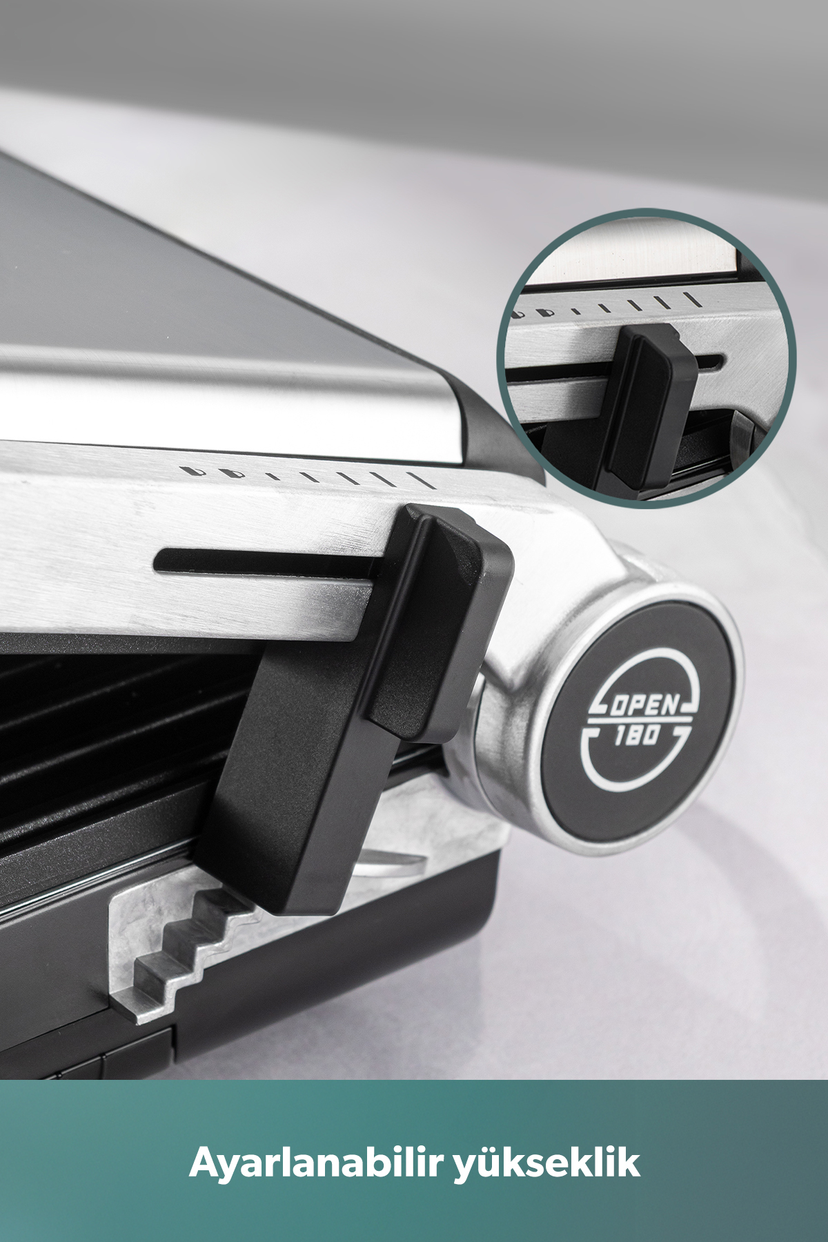 AYARLANABİLİR YÜKSEKLİK KONTROLÜ Ayarlanabilir 6 kademeli yükseklik ayarı sayesinde balık gibi hassas ürünlerin pişirilmesinde mükemmel sonuç yaratacaktır.