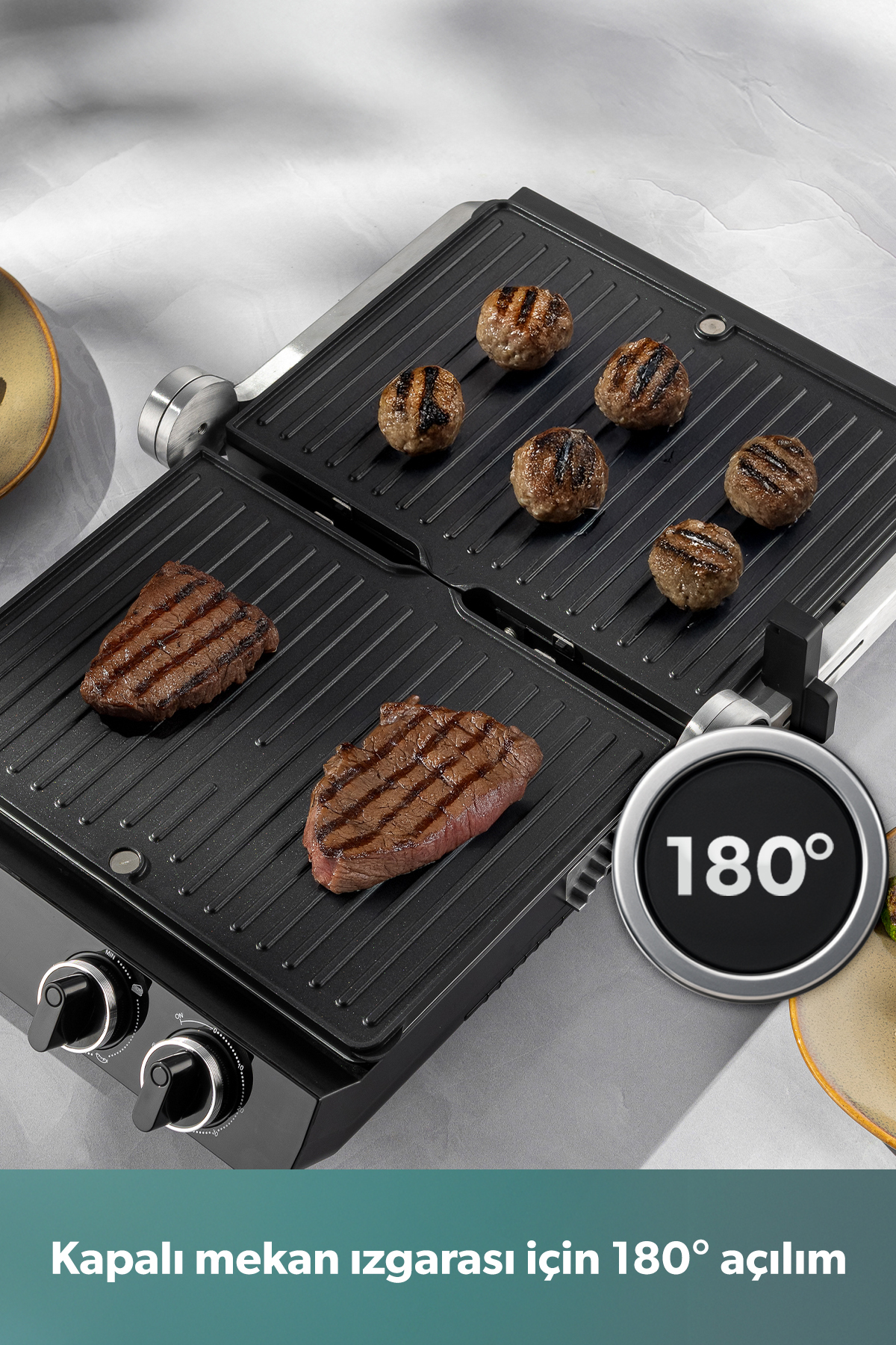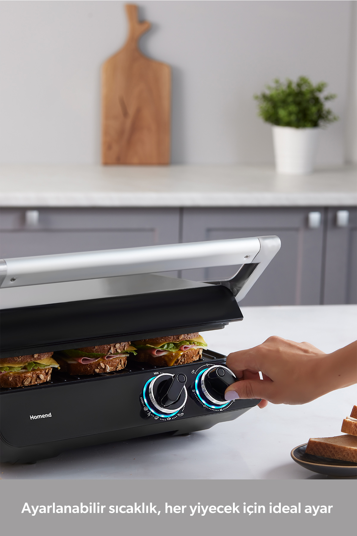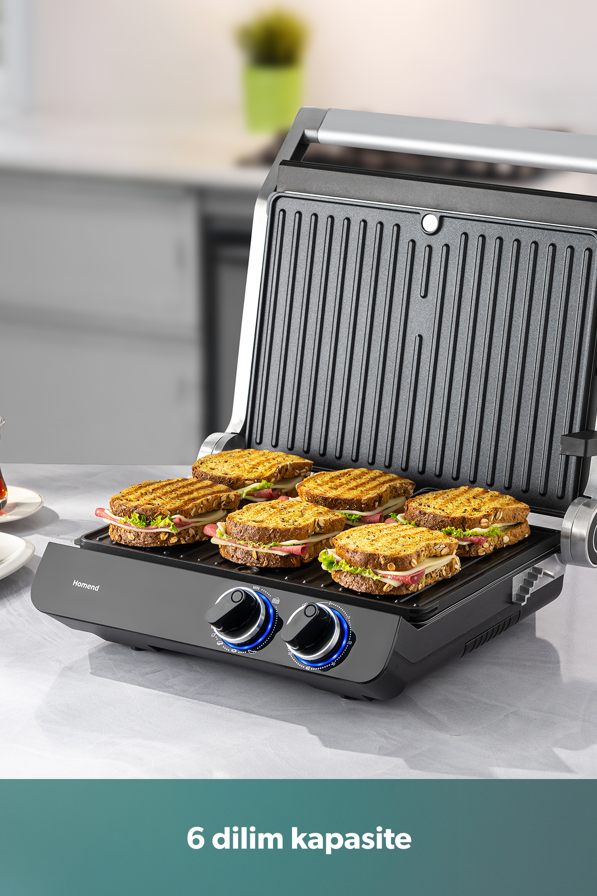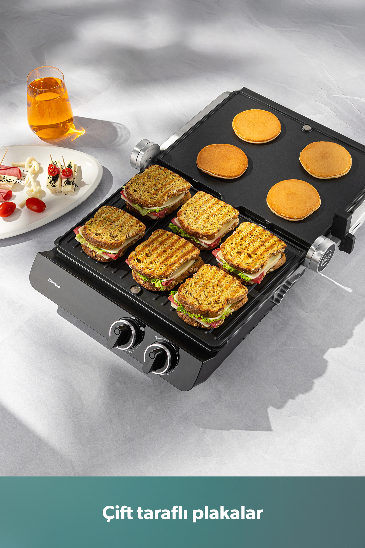 Homend Grilliant 1342H 3 in 1 Inox Gövde Çift Taraflı XL Döküm Plaka Tost ve Izgara Makinesi Çıtır çıtır tostlardan, harika pişmiş ızgaralara