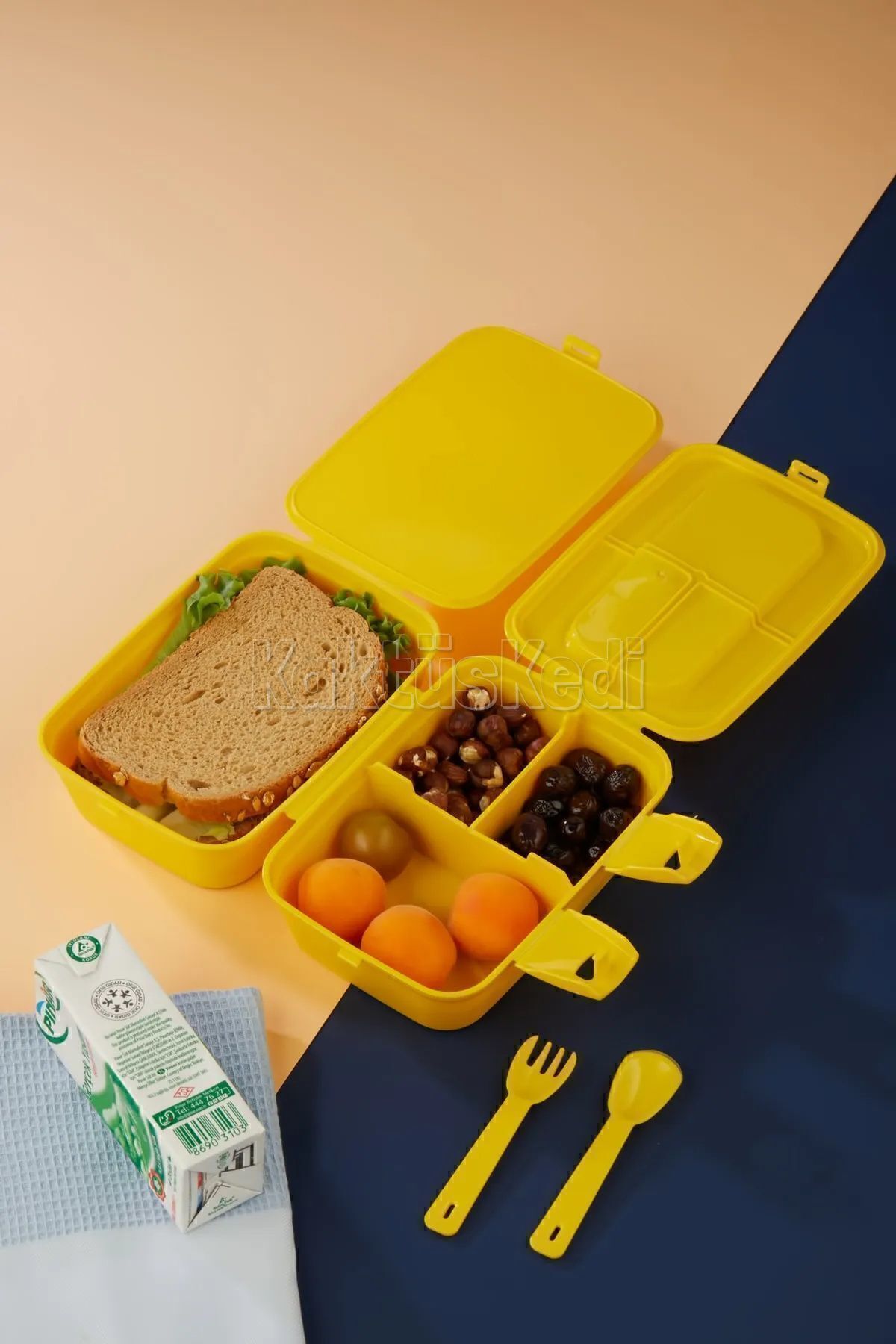 4 bölmesi sayesinde yemekler birbirine karışmaz. Ön kısmında kilitli mekanizması bulunur,bu sayede açılma yapmaz ve yiyecekler dökülmez.