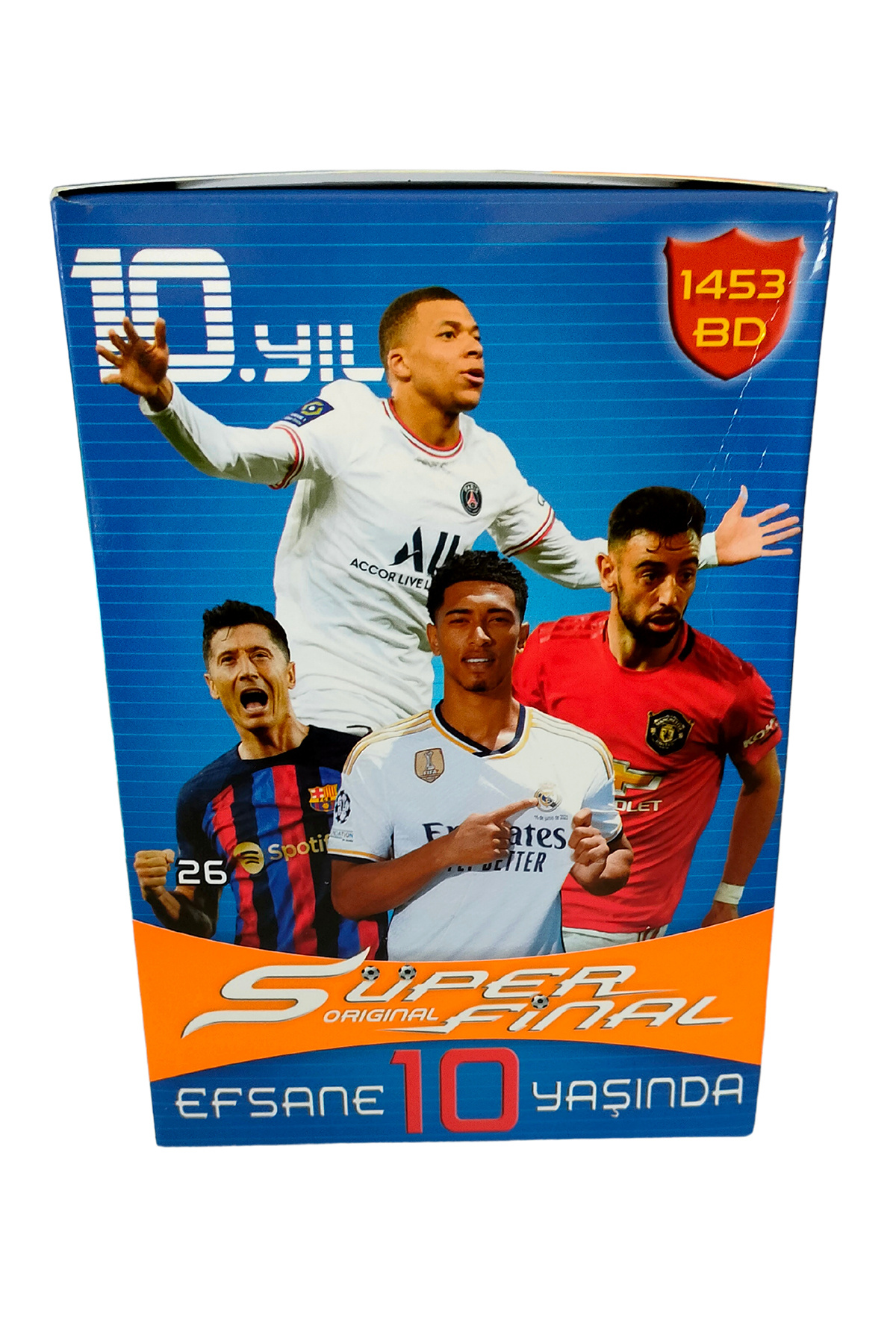 50 ambalajlı paket,her pakette 2 adet kart olmak üzere toplam 100 adet kart gönderimi yapılacaktır. 2023 Süper Final, Orijinal All Star, yüksek kaliteli baskılı futbolcu oyun kartı Süper Final efsanesi 10.yaşında, özel ve benzersiz futbolcu kartları (altın,elmas,efsanevi) sizlerle. Güncel transferler ve efsaneleşmiş futbolcular bir arada. Hediye