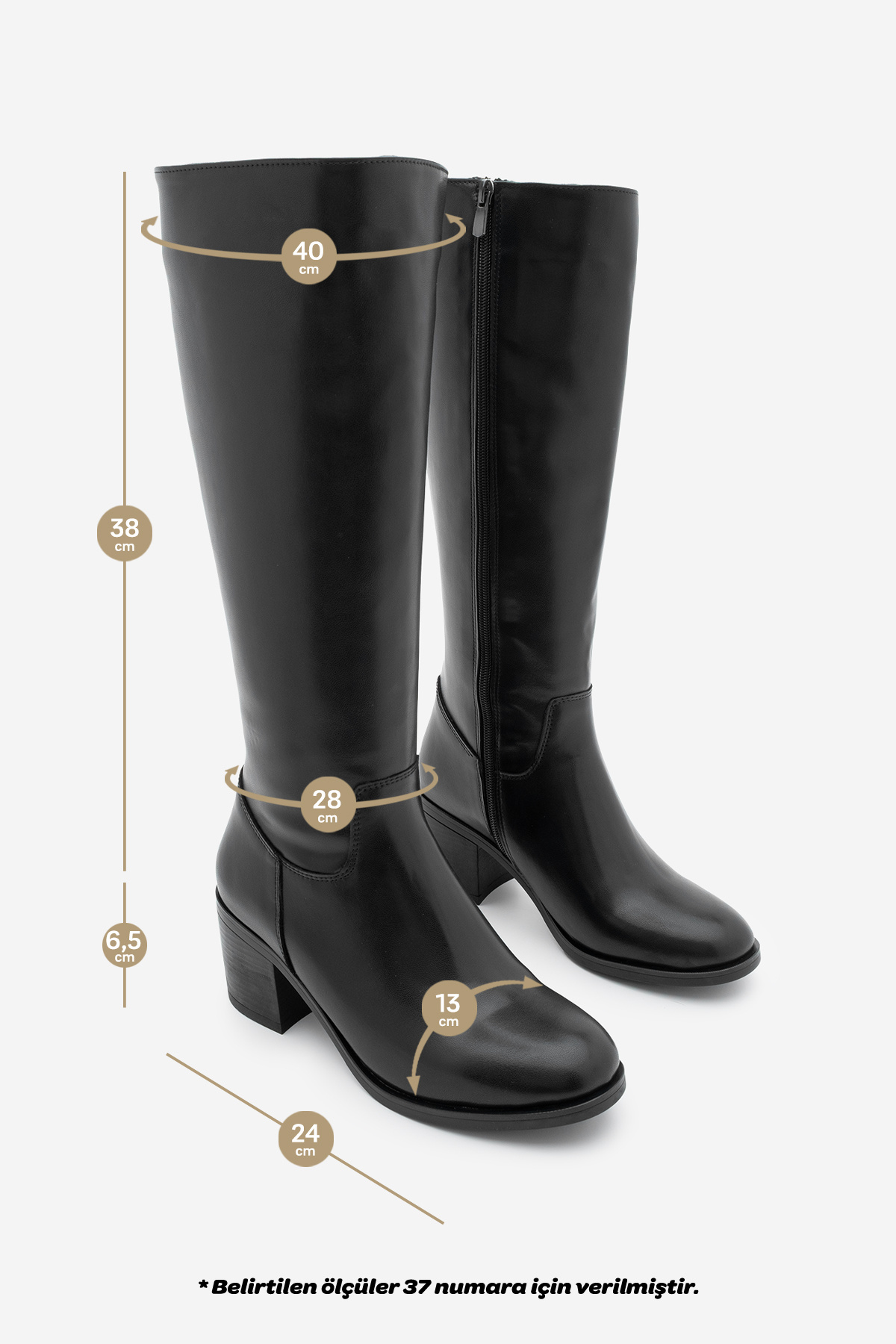 Günlük ve klasik kombinlerinizin en zarif tamamlayıcısı olacak bu topuklu çizme şimdi siyah rengi ile satışta.