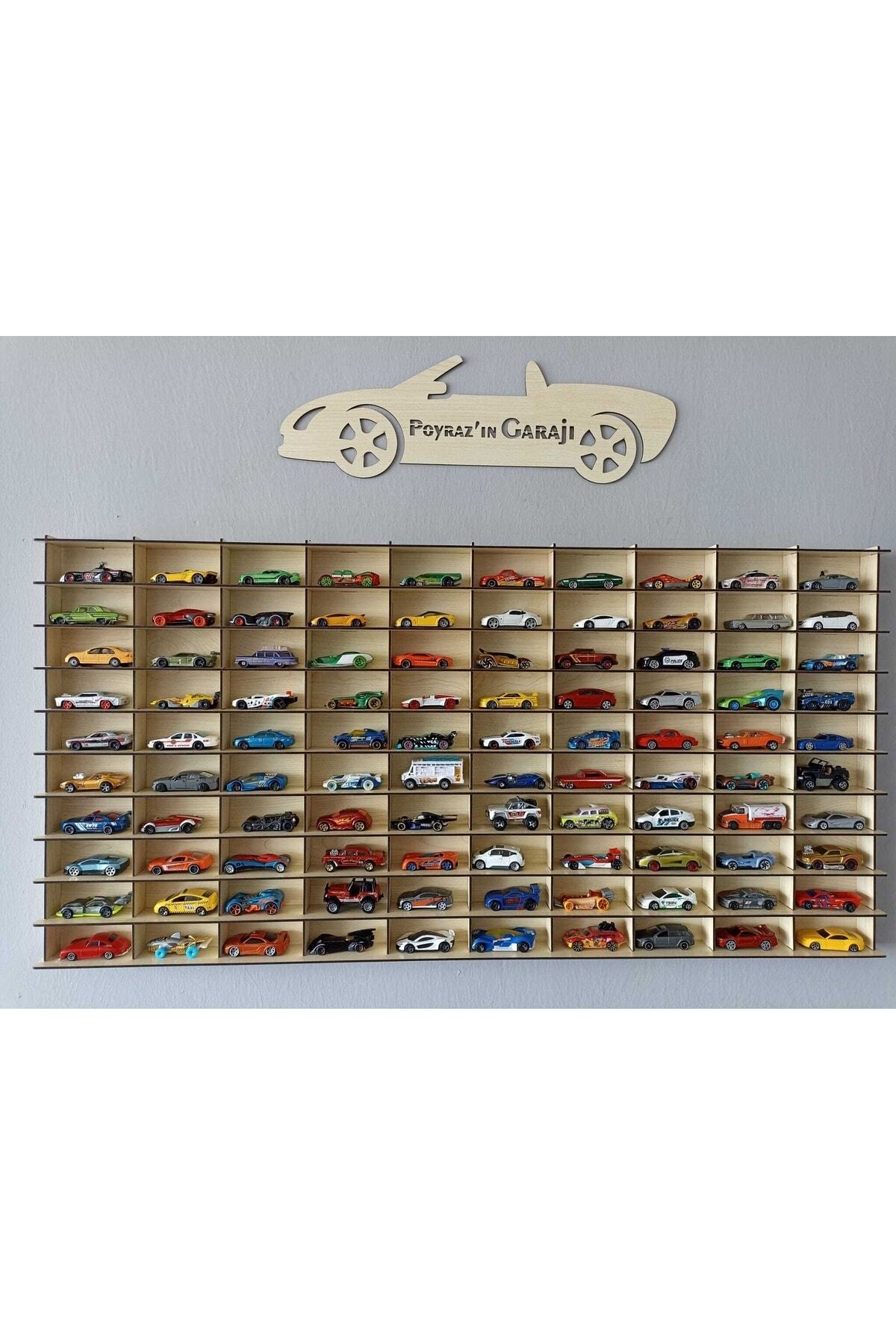 Ahşap Araba Rafı 100'lü Yatay Akça Ağaç (krem) Renk (hotwheels Ve Matcbox Arabaları Için Uygundur)
