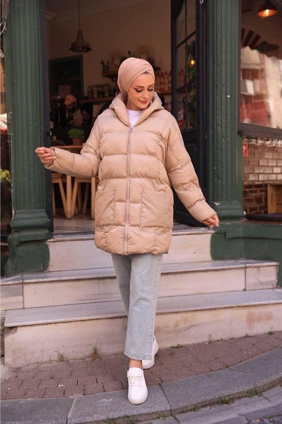 Bomber modeliyle modern ve şık bir görünüm sunan bu tesettür mont, günlük kullanım için idealdir.