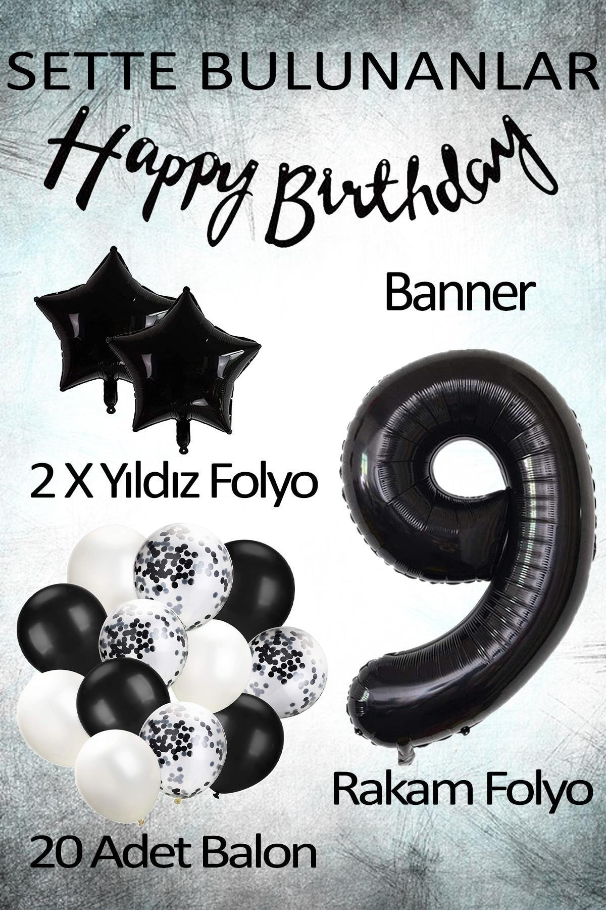 Siyah Konsept 9 Yaş Doğum Günü Parti Kutlama Seti