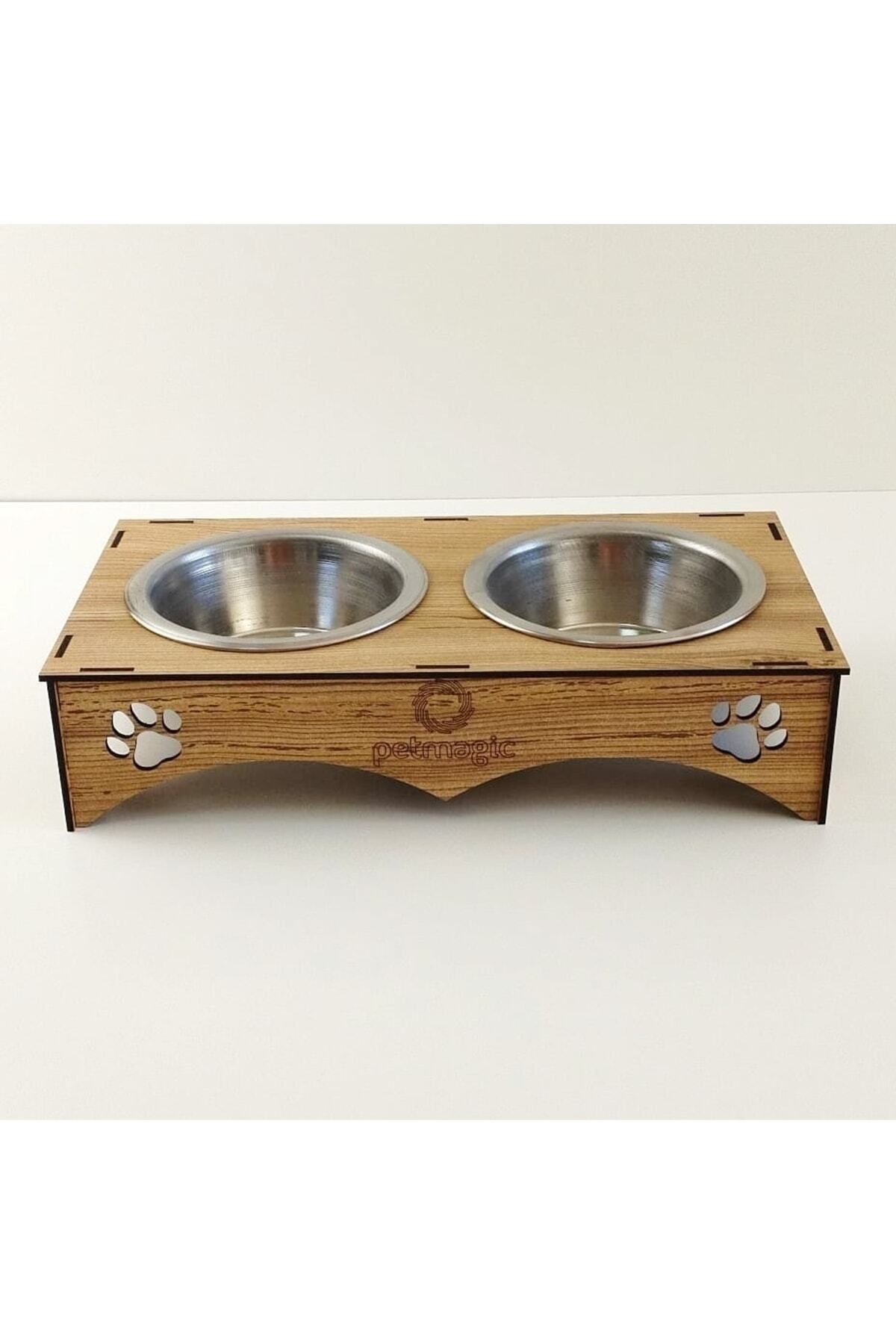 Ahşap kaseli tasarımı, hem şık bir görünüm sağlar hem de kedinizin veya köpeğinizin rahatça kullanabileceği bir alan oluşturur