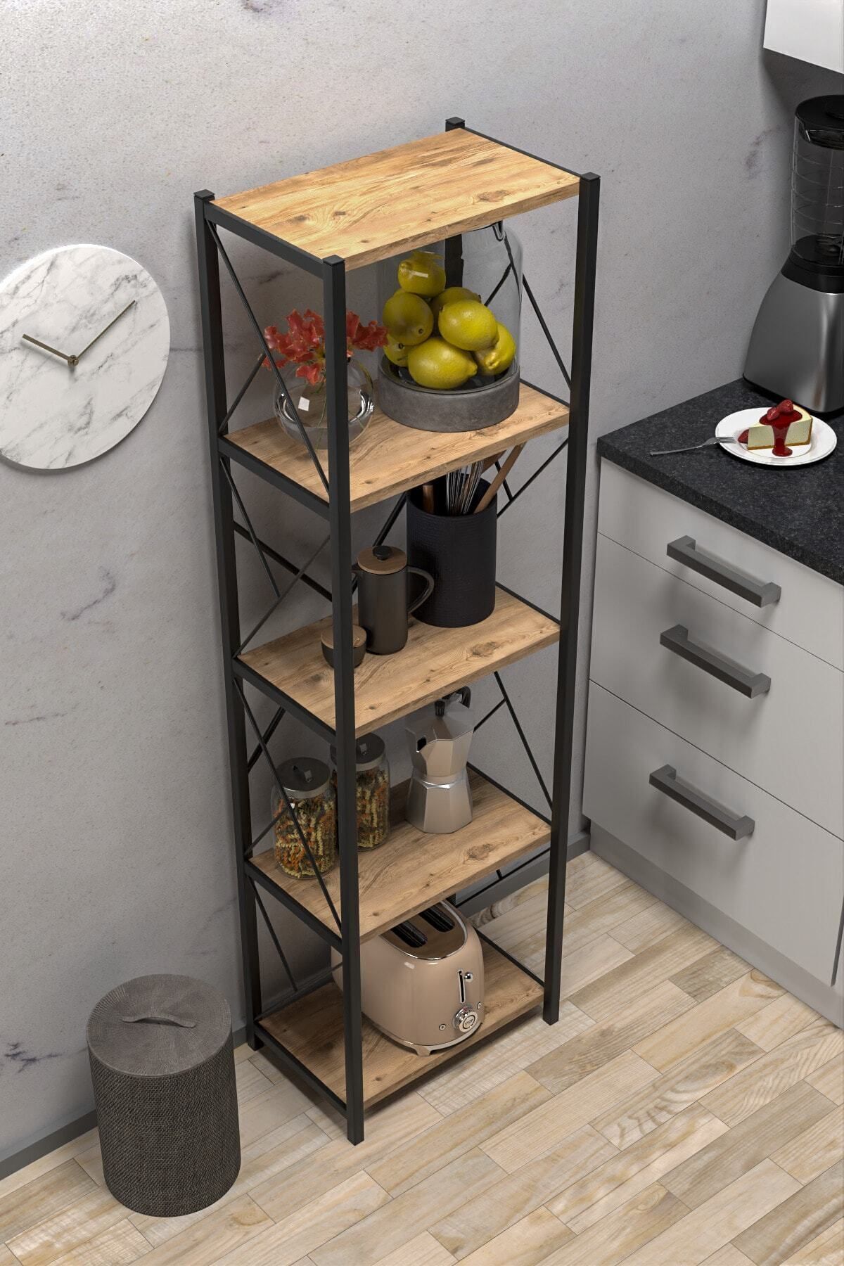 Arfelix Metal Tekli Mutfak Rafı Malzeme Dolabı 5 Raflı Mikrodalga Fırın Rafı Çok Amaçlı