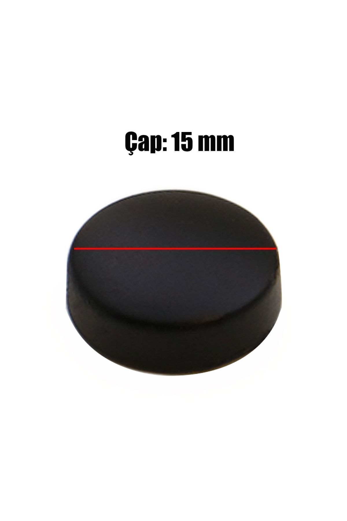 15 mm çapında mat siyah metal vida tapası, dekoratif vidaların gizlenmesini sağlar ve görsel bütünlüğü korur