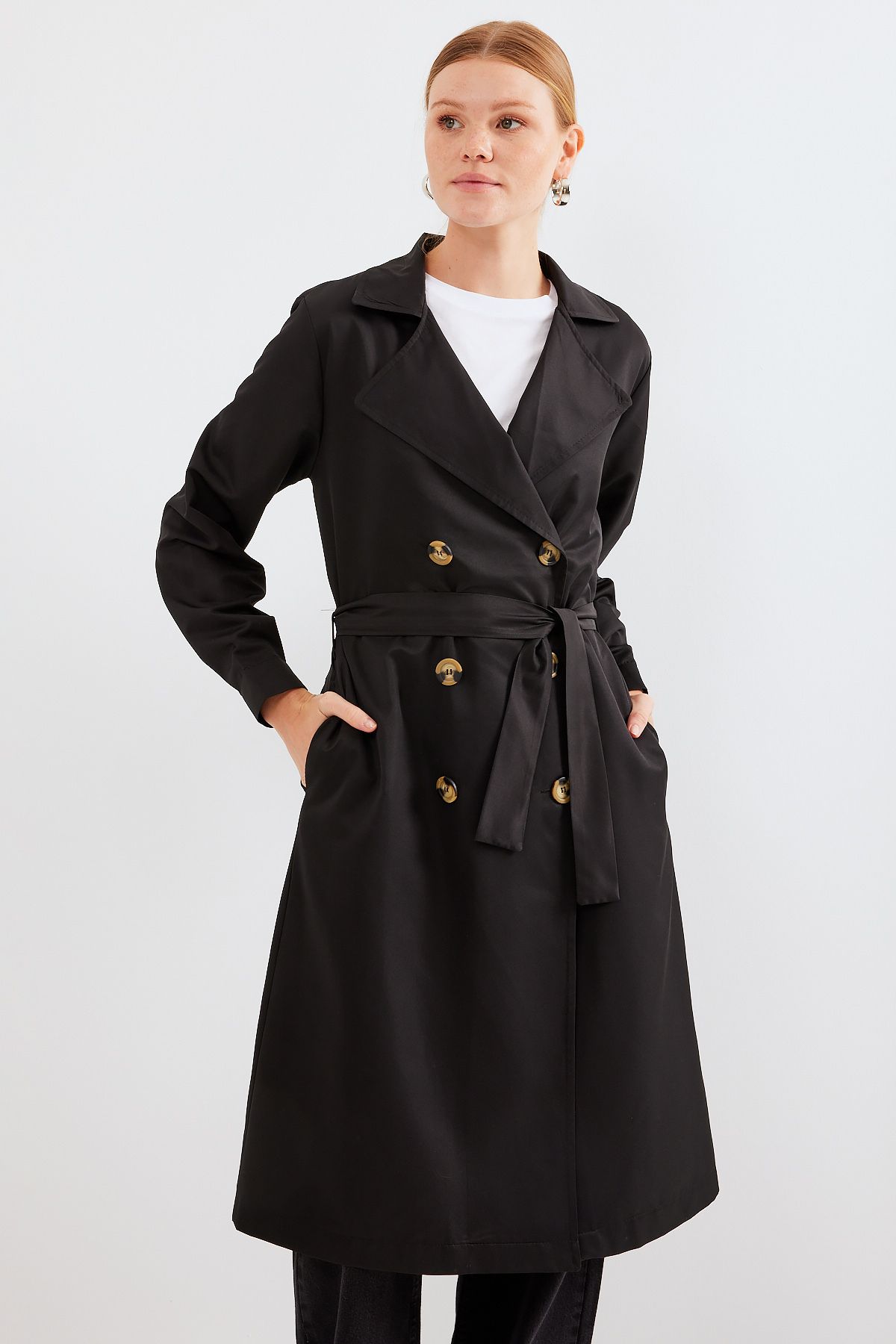 Ürün Içerigi% 100 PolyesterÜrün özellikleriKruvaze Yaka Trençkot, Kemerli Mevsimlik TrençkotModel BilgileriBedeni : 38Ürün Boyu: 109 cmKol Boyu: 58 cmBedenler Arasinda 2 cm Fark Vardir