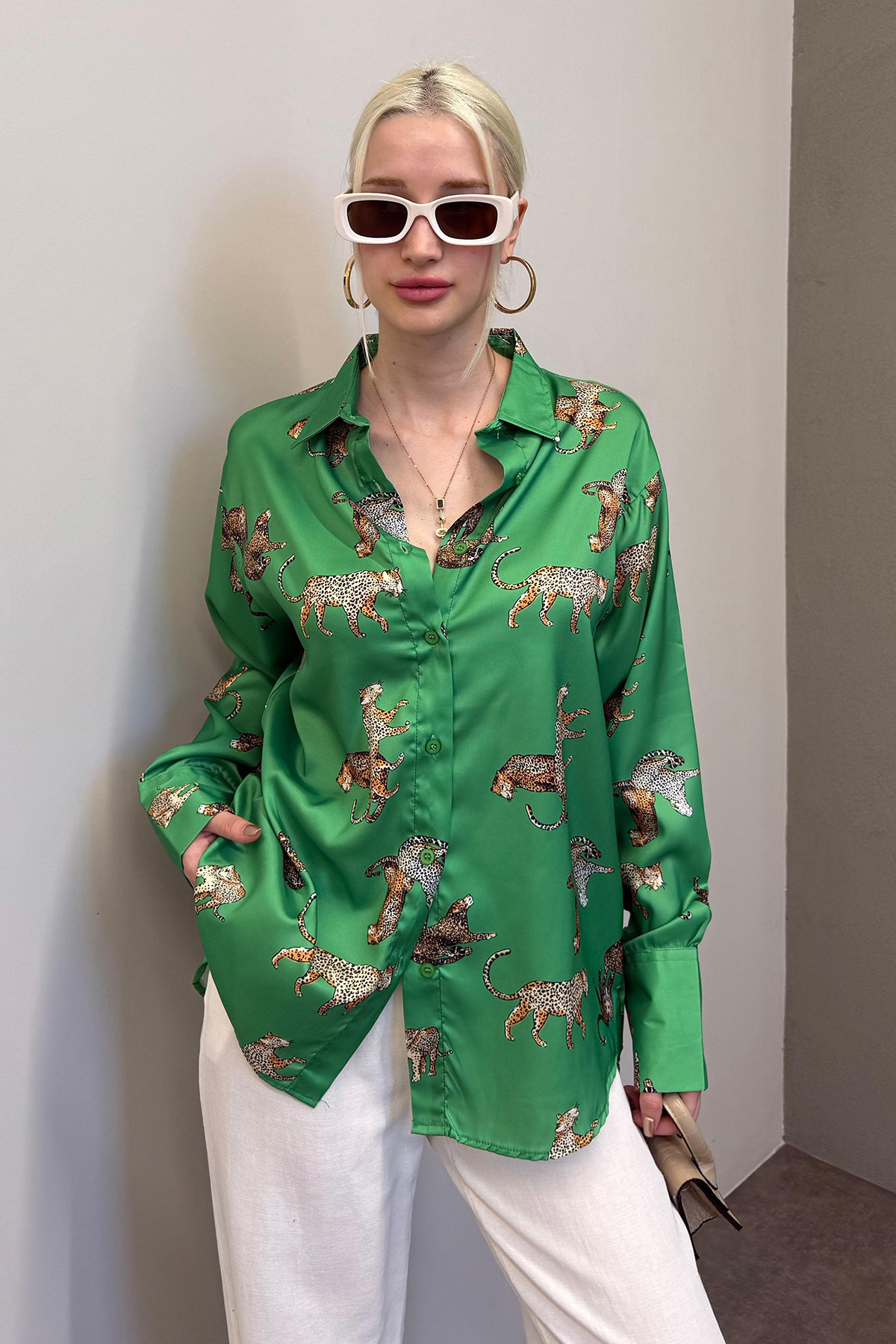 Baskılı deseni ile göz alıcı bir stil oluşturur