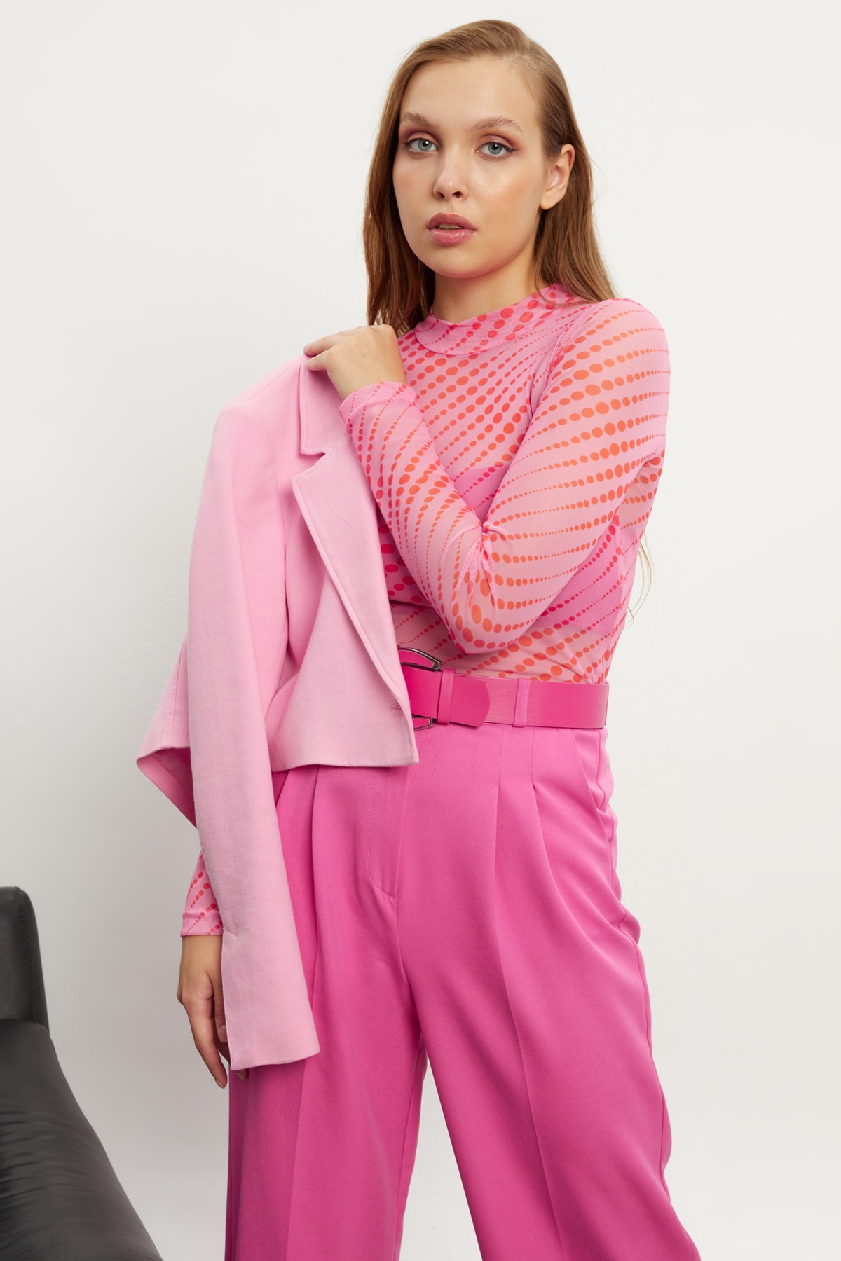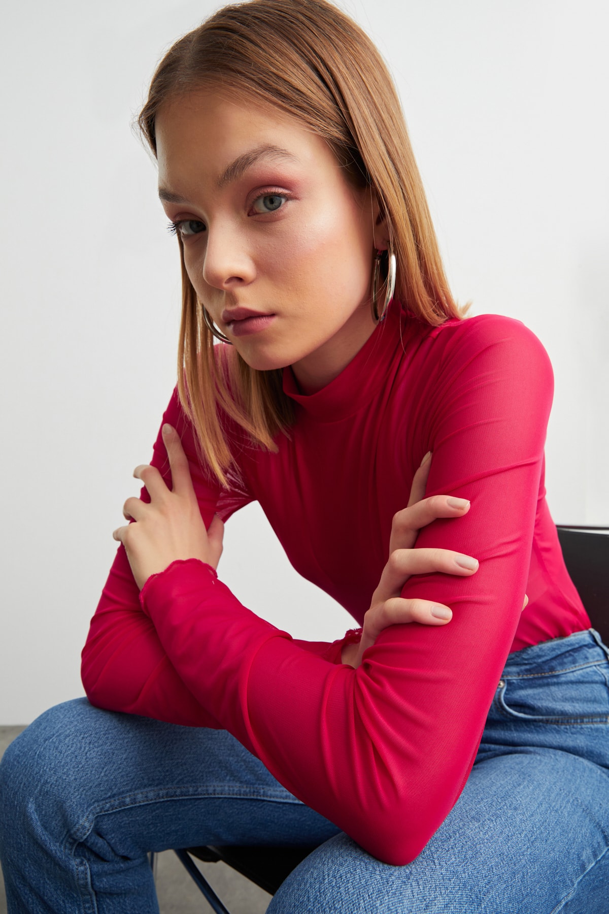 Hafif ve zarif tül dokuma tipi, feminen bir görünüm kazandırır