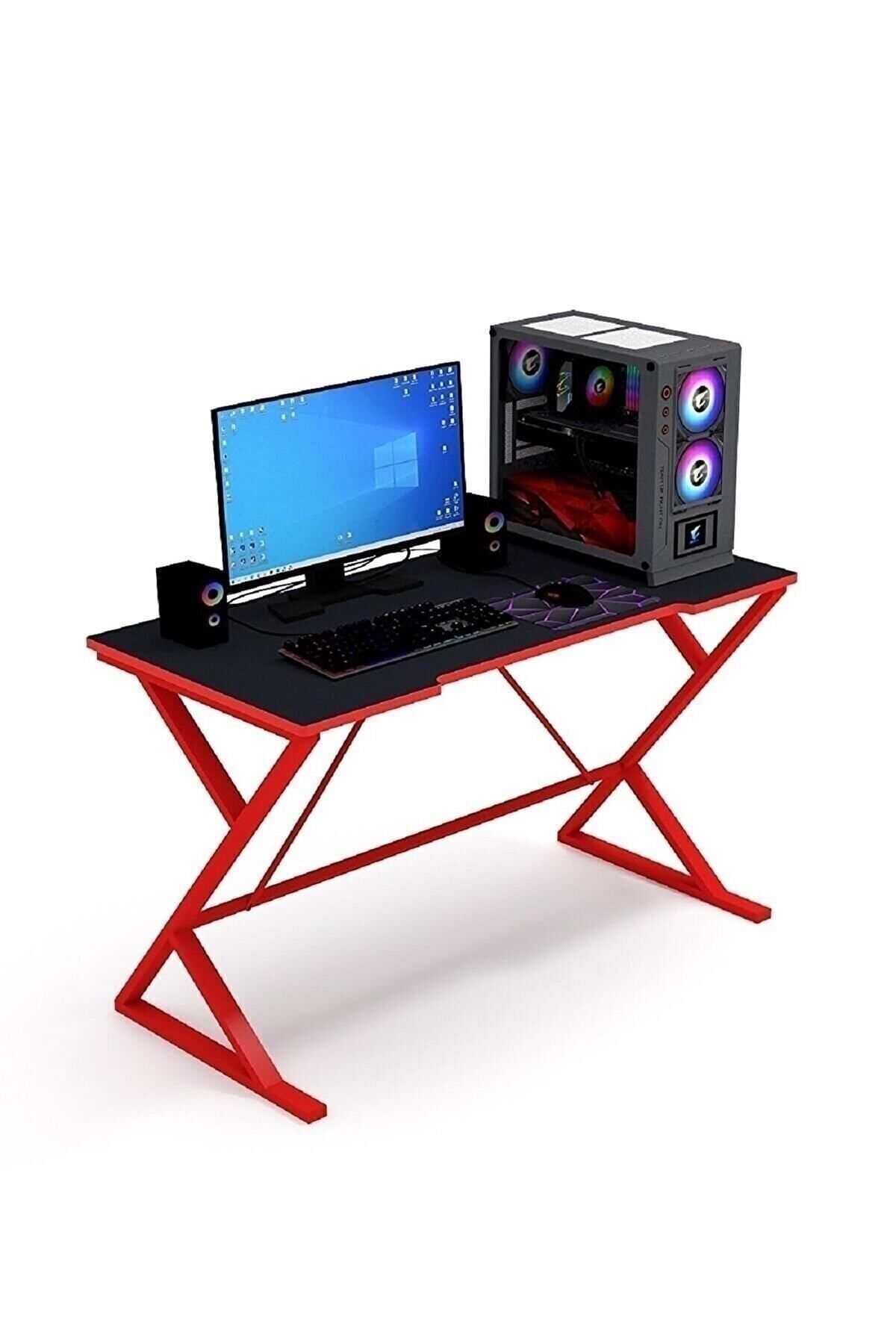 SINIF SİYAH 18mm YONGA LEVHADAN, KENARLARI PVC BANT KAPLI, STATIK PROFİL KIRMIZI METAL AYAKTAN OLUŞAN BİR OYUNCU MASASIDIR