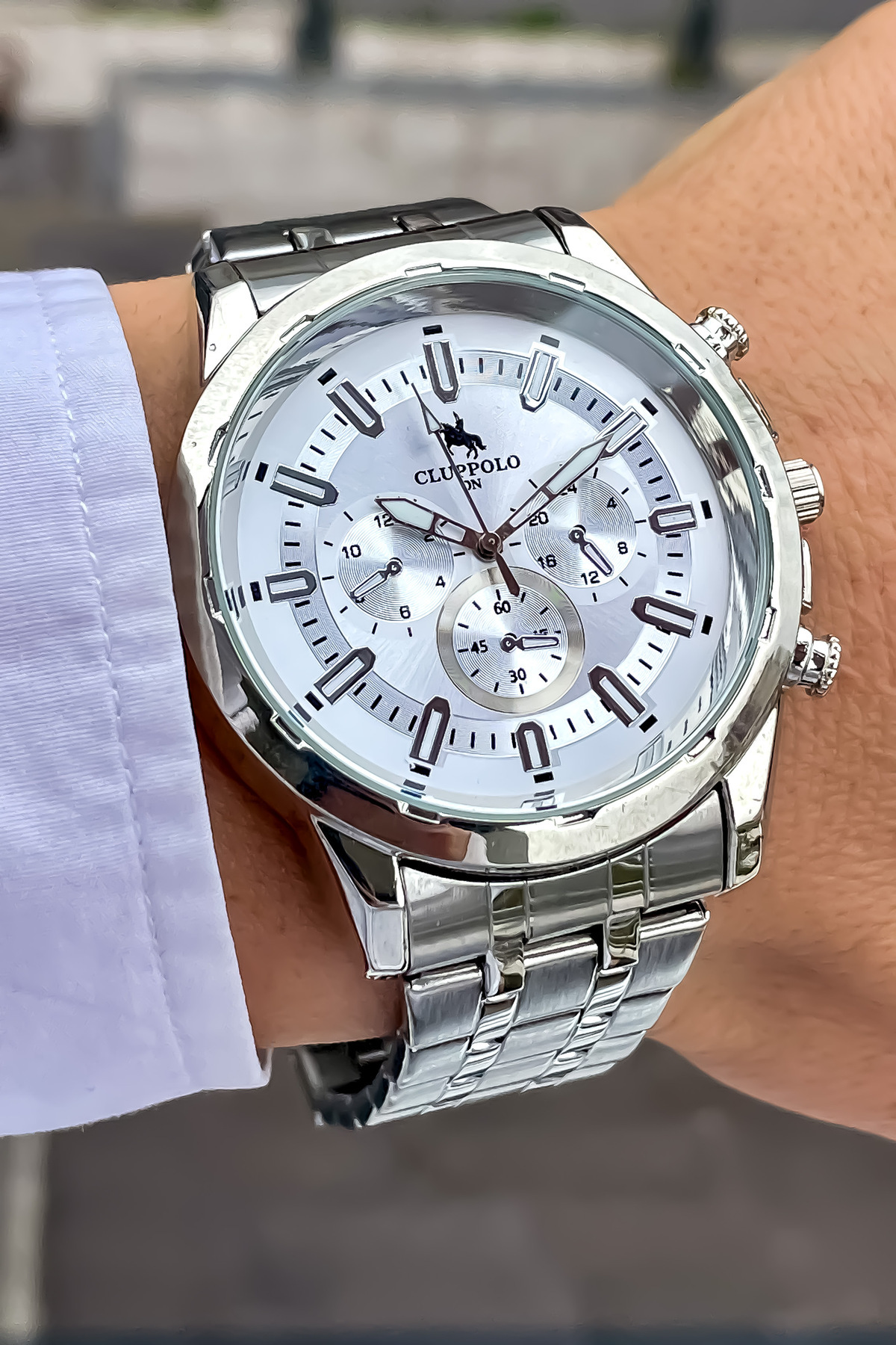 - Şık ve modern tasarımıyla dikkat çeken bu erkek kol saati, gümüş renk metal kordonu ile zarif bir görünüm sunar.