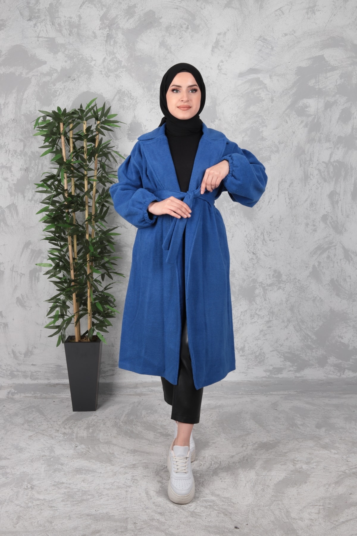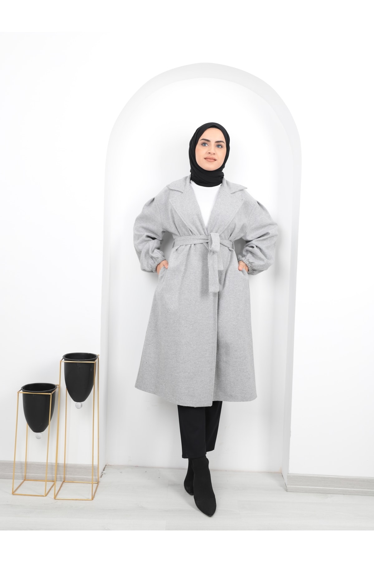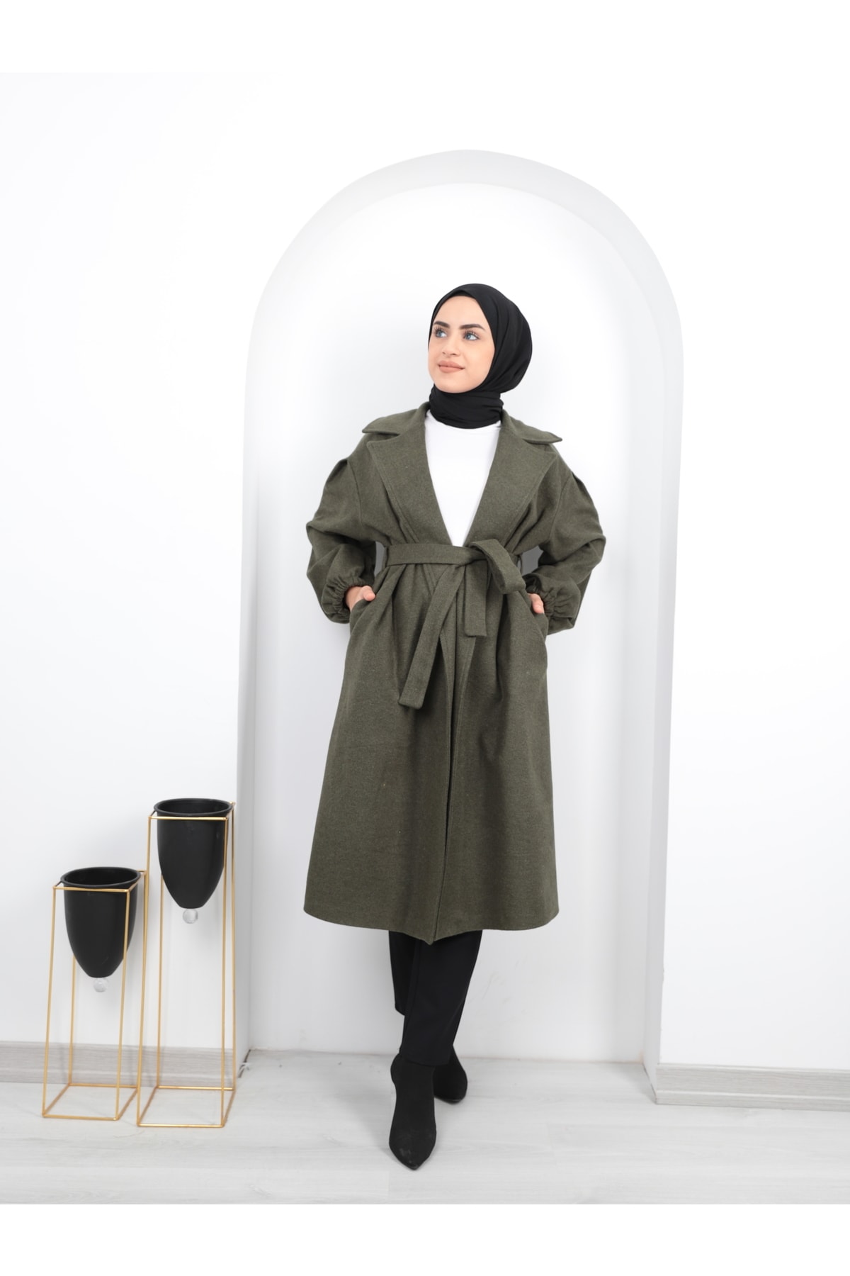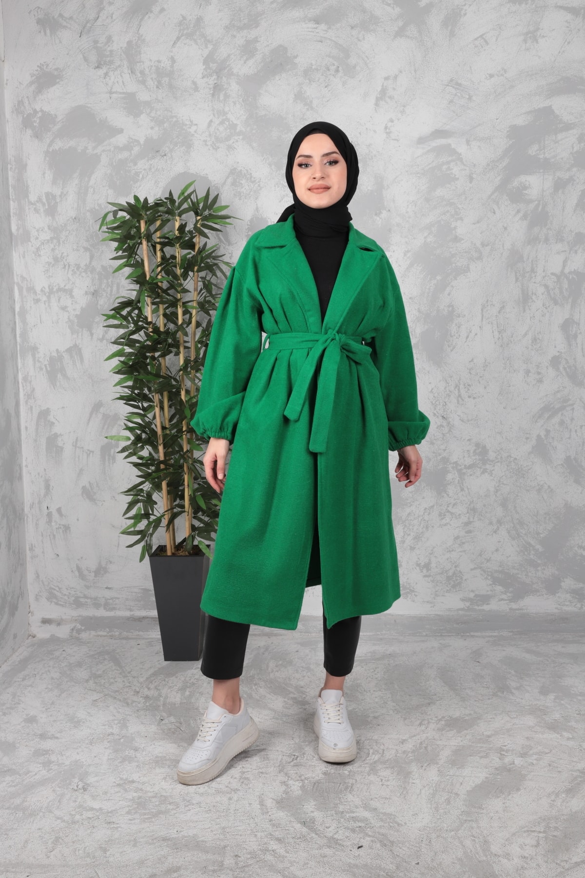 Kuşak detayı bel bölgesini vurgulayarak feminen bir siluet oluşturur ve kişisel zevke göre ayarlama im