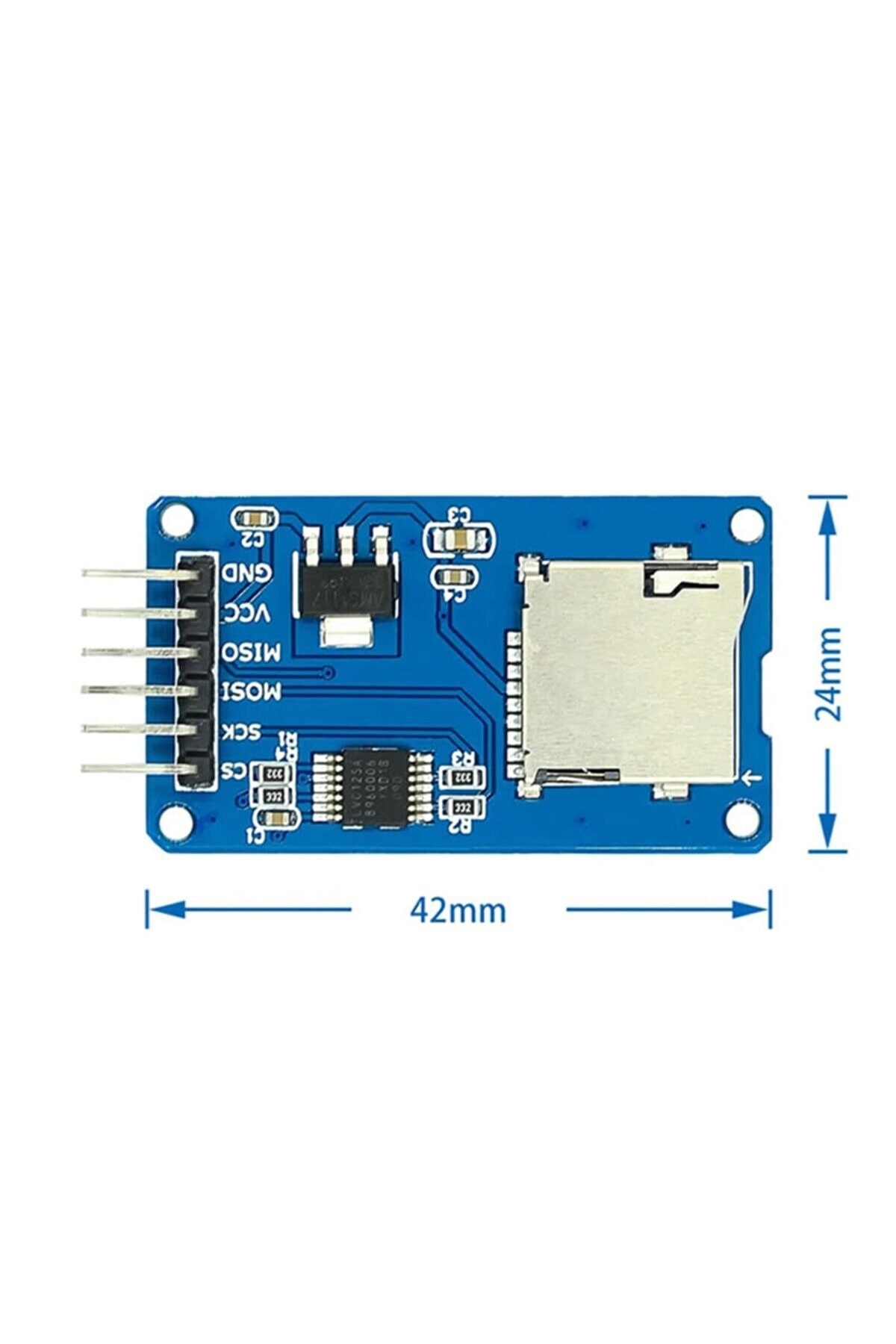 Micro Sd Kart Modülü Hafıza Kartı TF Kart Microsd Bellek Memory SPI Okuyucu Mikro Sd 3.3V 5V Arduino Data Kayıt Logger Ses Mp3 Micro Sd Kart okuma ve yazma işlemlerini yapabilmeyi sağlar.