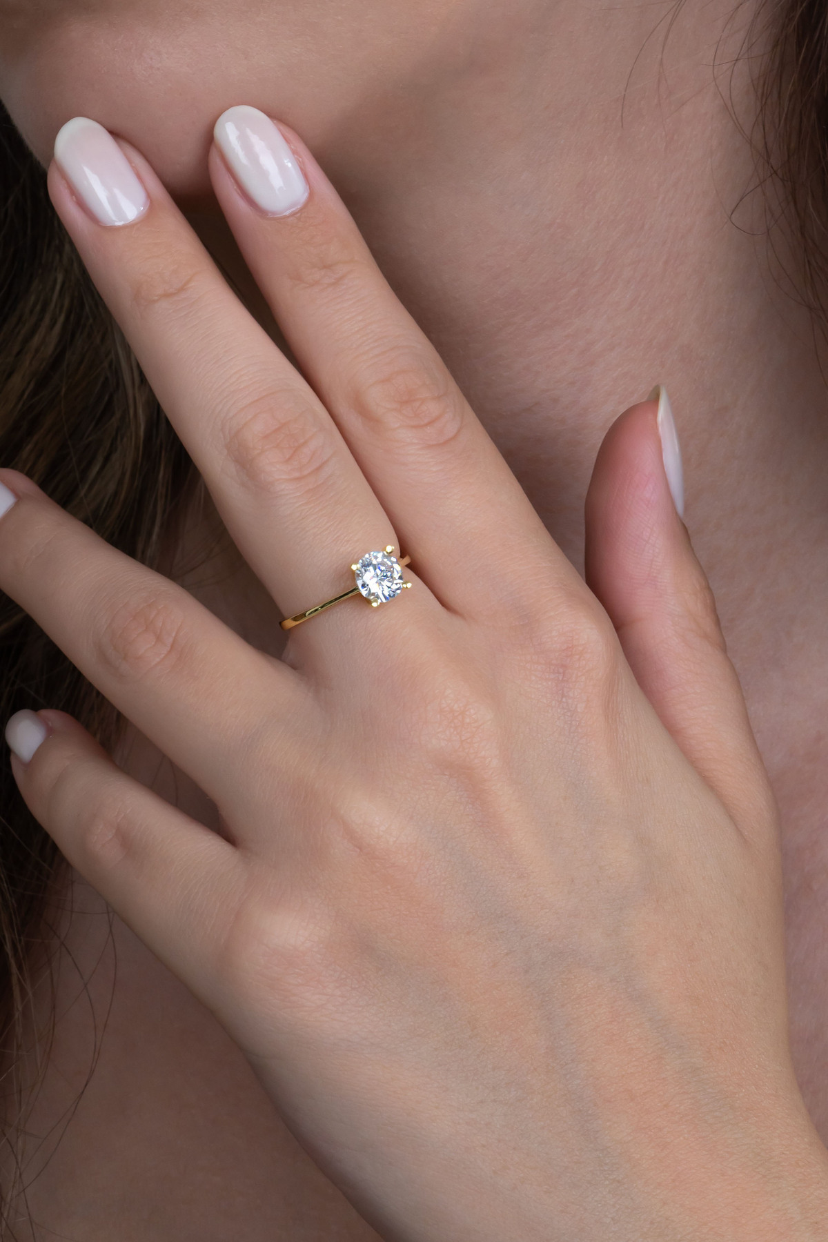 Yuvarlak kesim taşı, klasik ve zamansız bir tasarım anlayışını yansıtarak her tür kıyafetle uyum sağlar