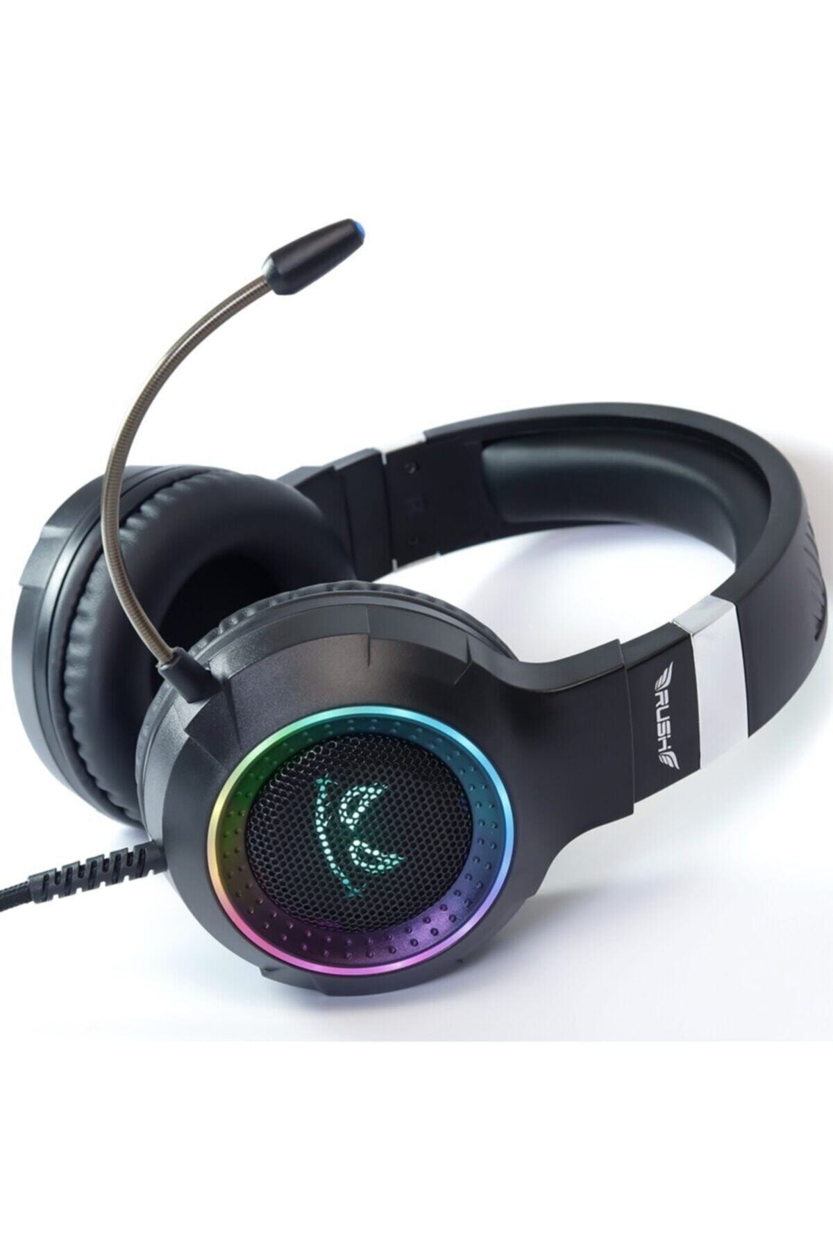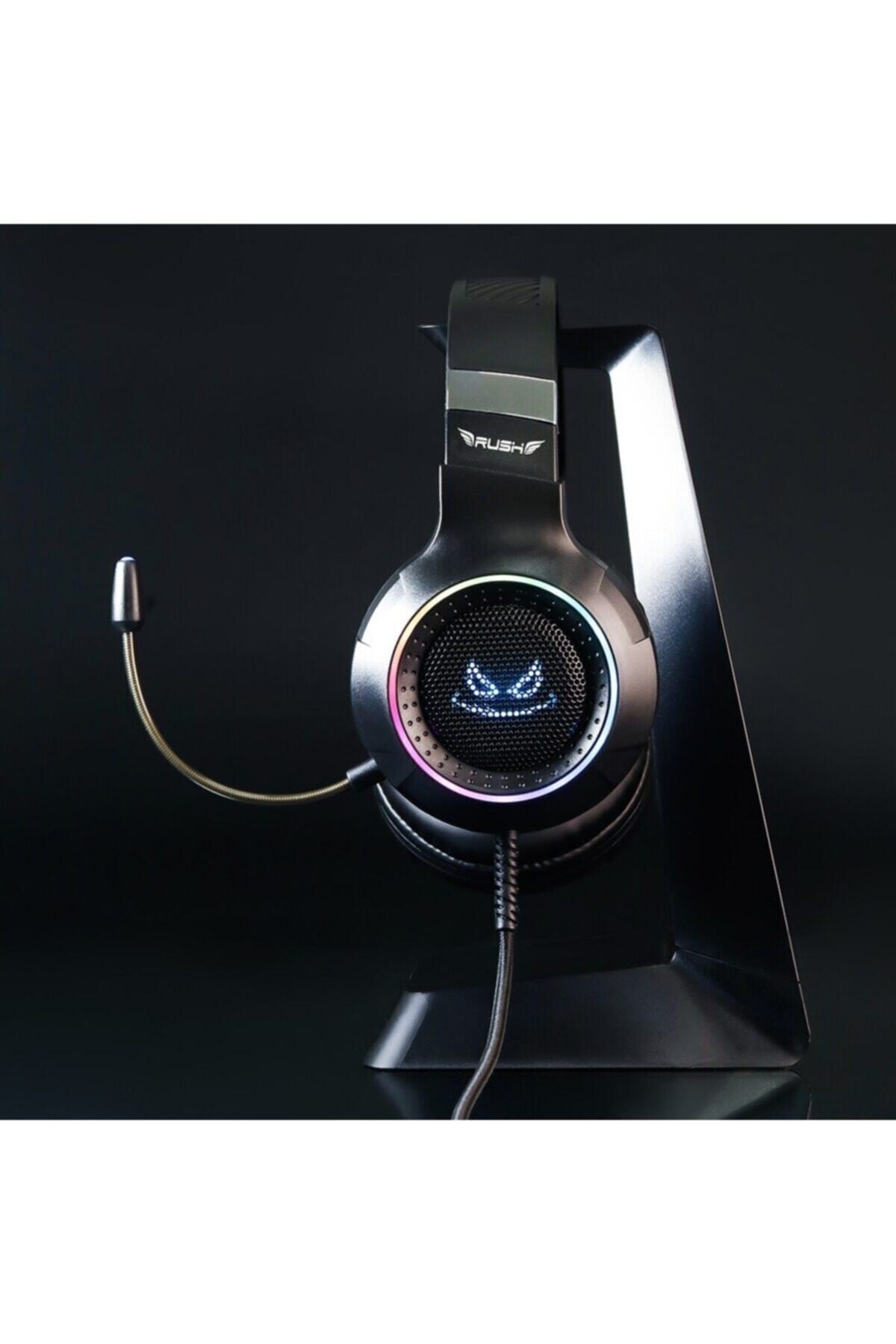 dinamik ve akıcı şerit aydınlatması ile iki yönden modern ve estetik bir görünüm sağlar.rush ace rhx55 usb 7.1 surround+titreşim rgb oyuncu kulaklığı
