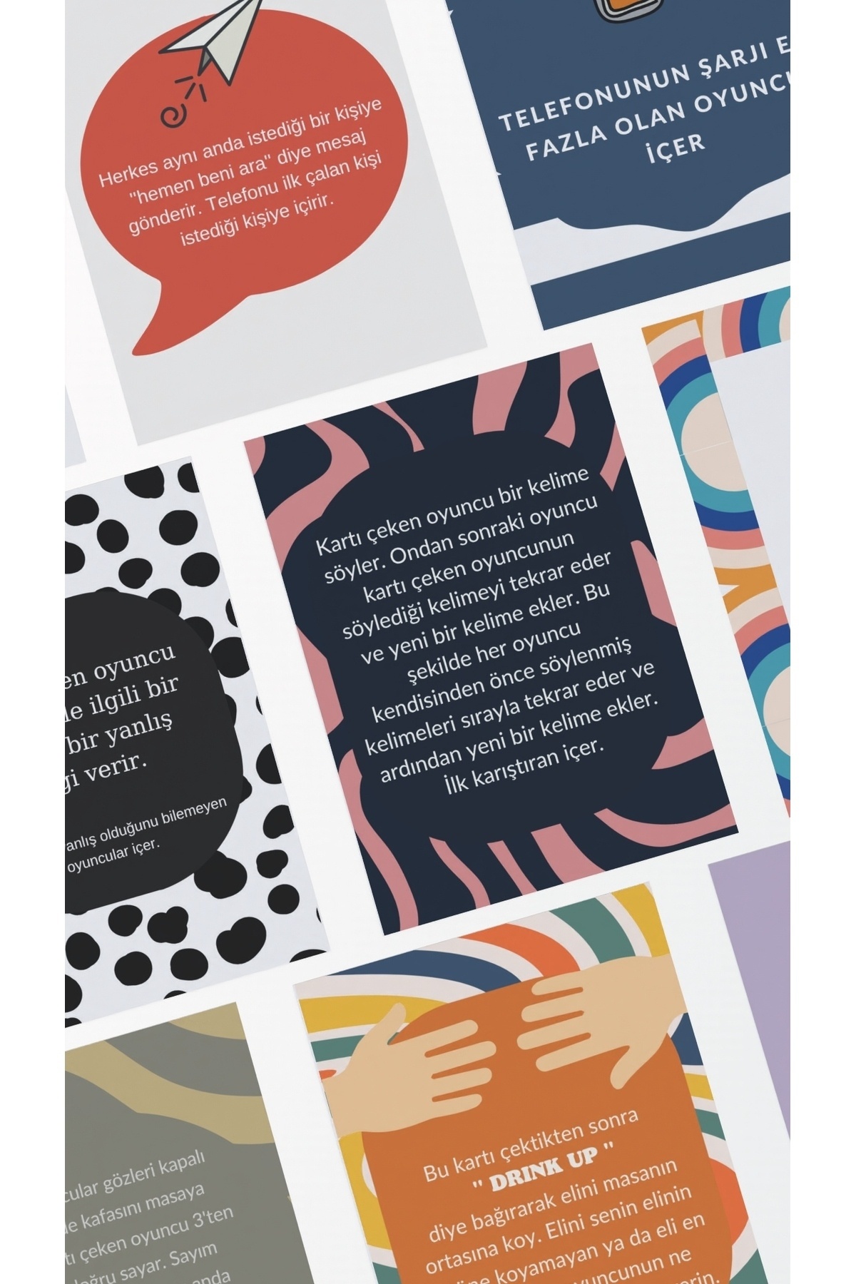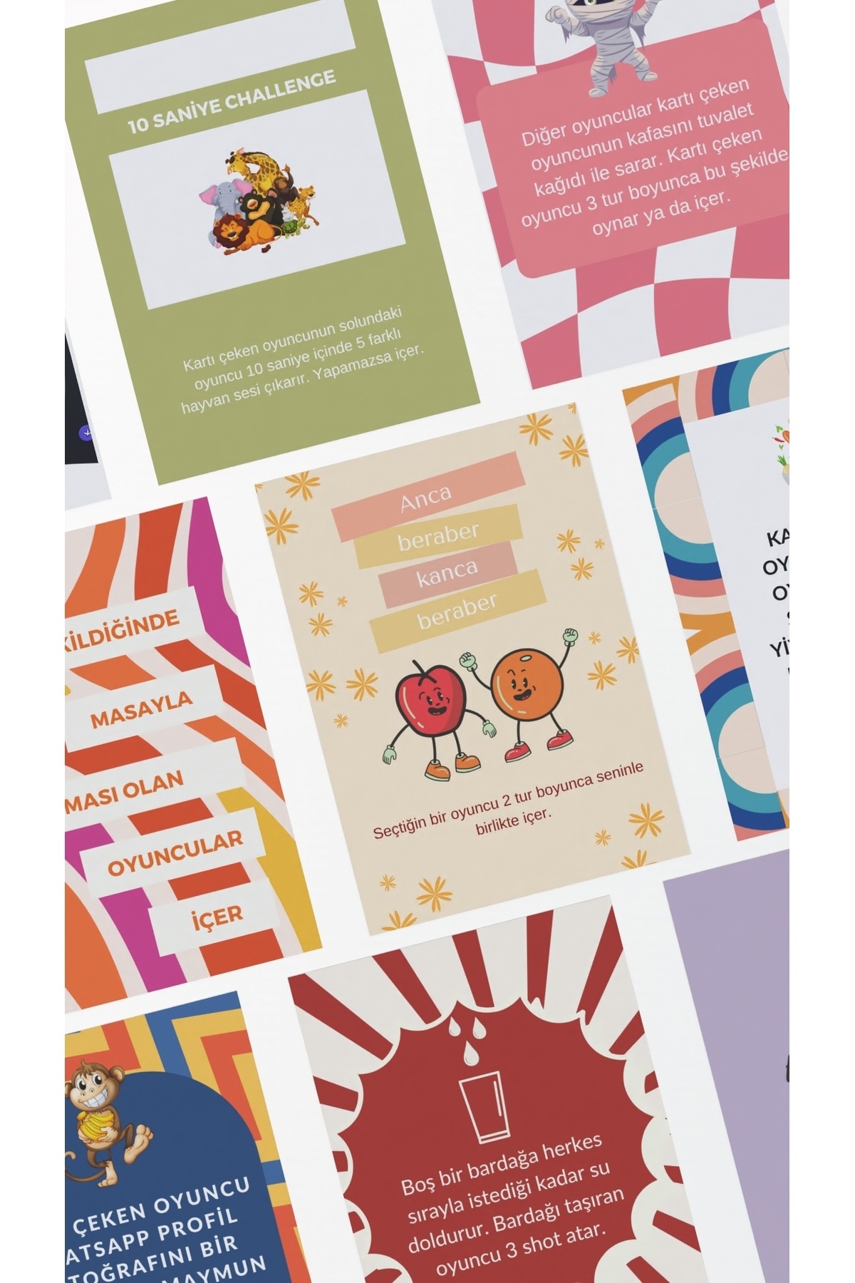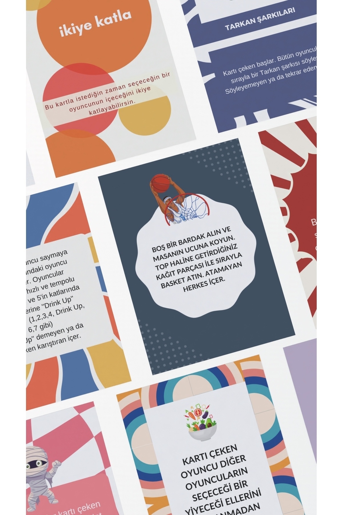 İkiye katla, deve cüce, yerine içir, pas, kural iptal kartlarını oyuncular istedikleri zaman kullanabilirler.