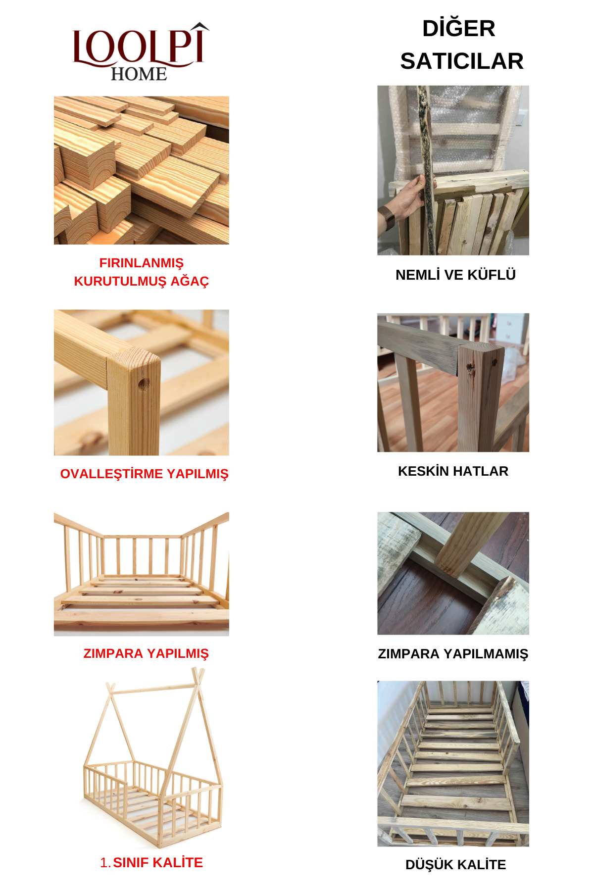 Loolpi Home – Montessori Bebek Ve Çocuk Karyolası Unisex Doğal Ahşap Yatak KARYOLA ÖZELLİKLERİ: Bebek, çocuk ve hamile sağlığı için uygun %100 doğal 1. Sınıf çam ağacından üretilmektedir. Montessori karyolamız kesinlikle sağlığa zararlı kimyasal hiçbir materyal içermez. Temizliği oldukça kolaydır.