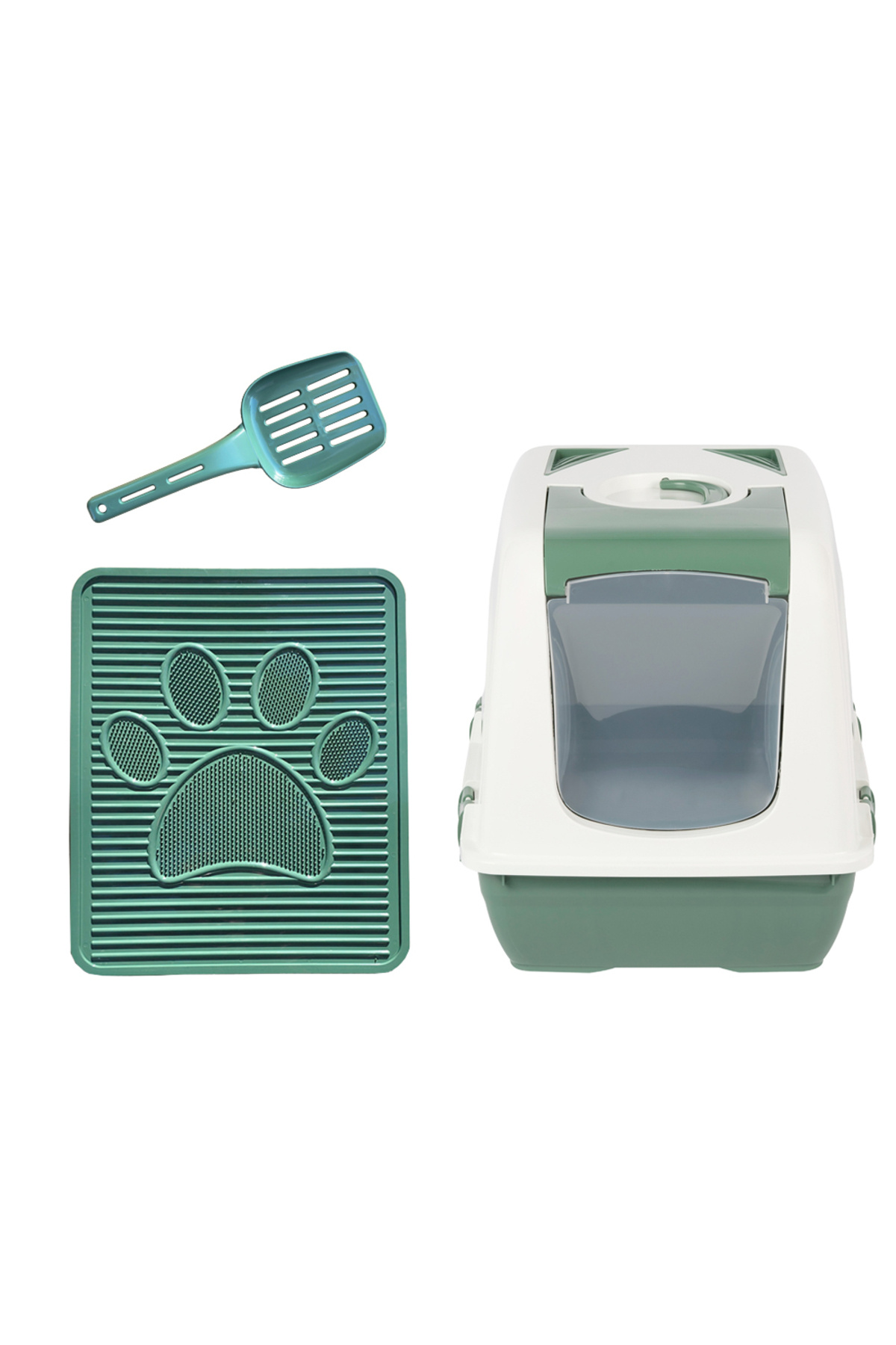 - Kedi tuvalet seti, kapalı tuvalet, paspas ve kürek olmak üzere üç parçadan oluşur ve kedinizin temiz ve hijyenik bir ortamda tuvalet ihtiyaçlarını karşılamasını sağlar.