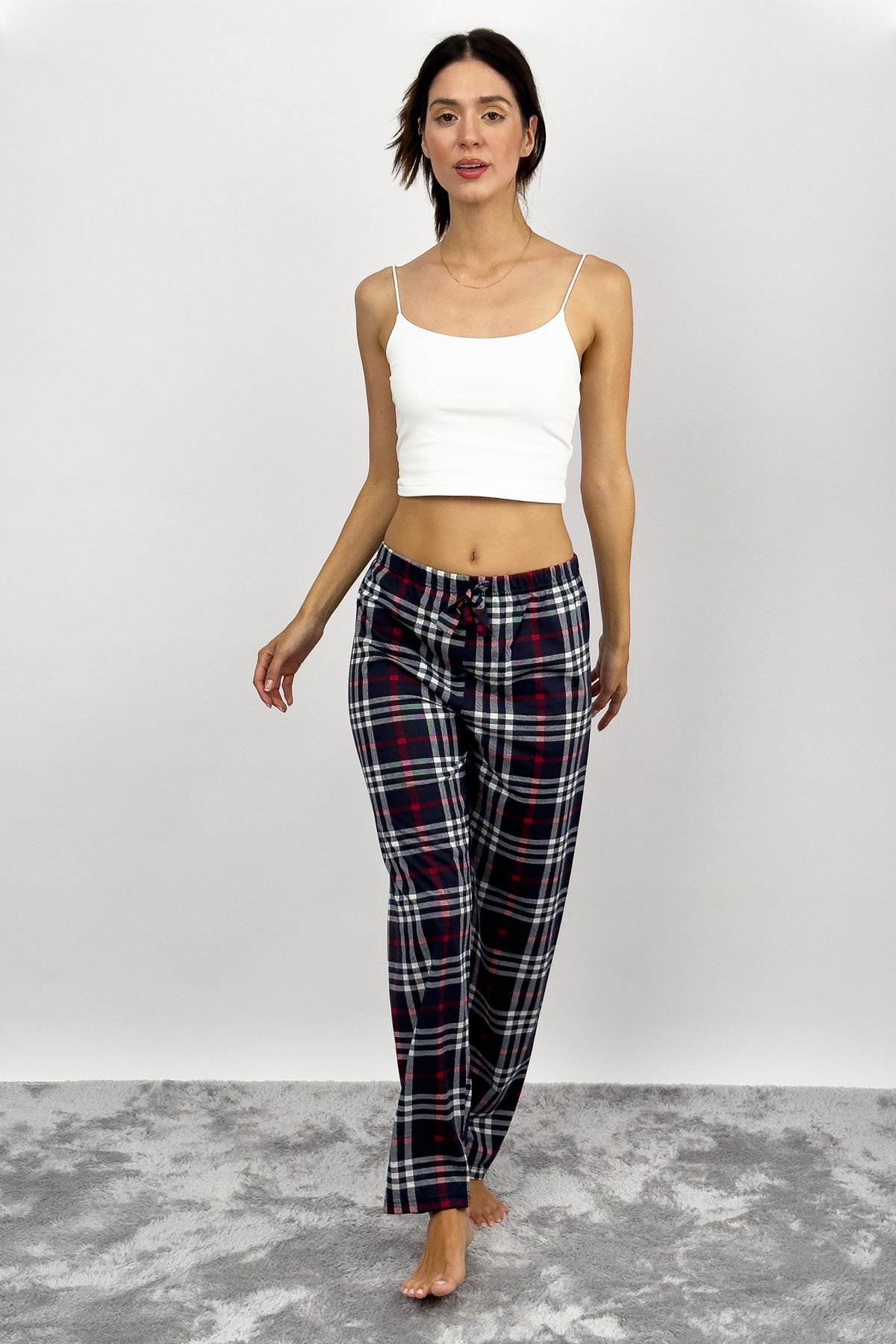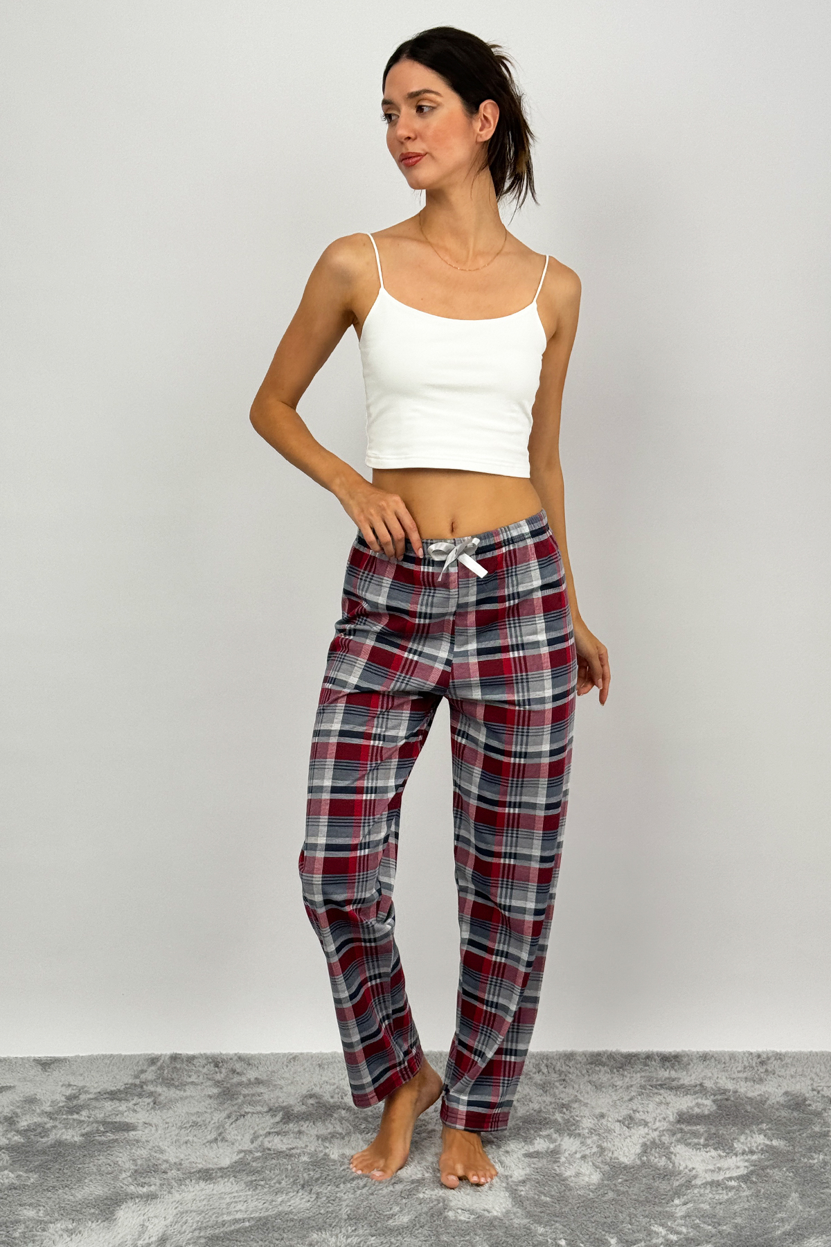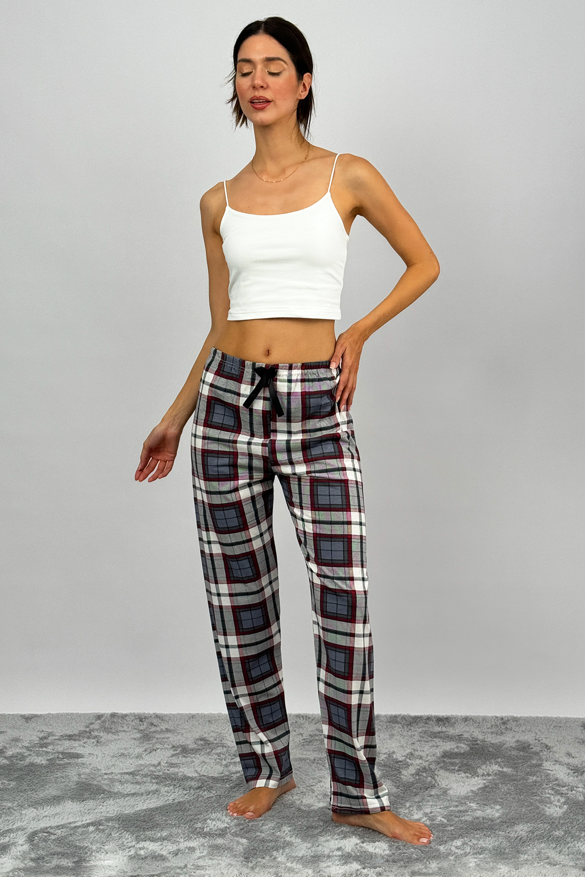 Kadın Pamuklu Ekose Desenli Pijama Altı Eşofman Kurdeleli