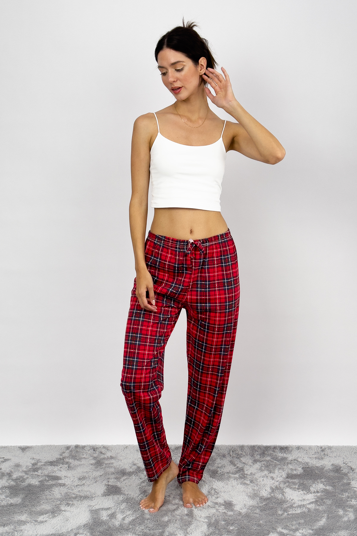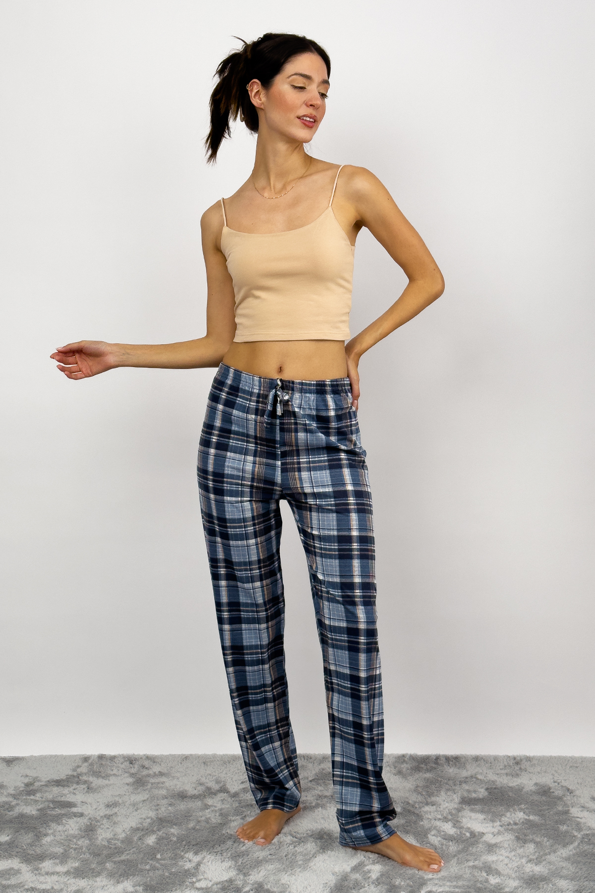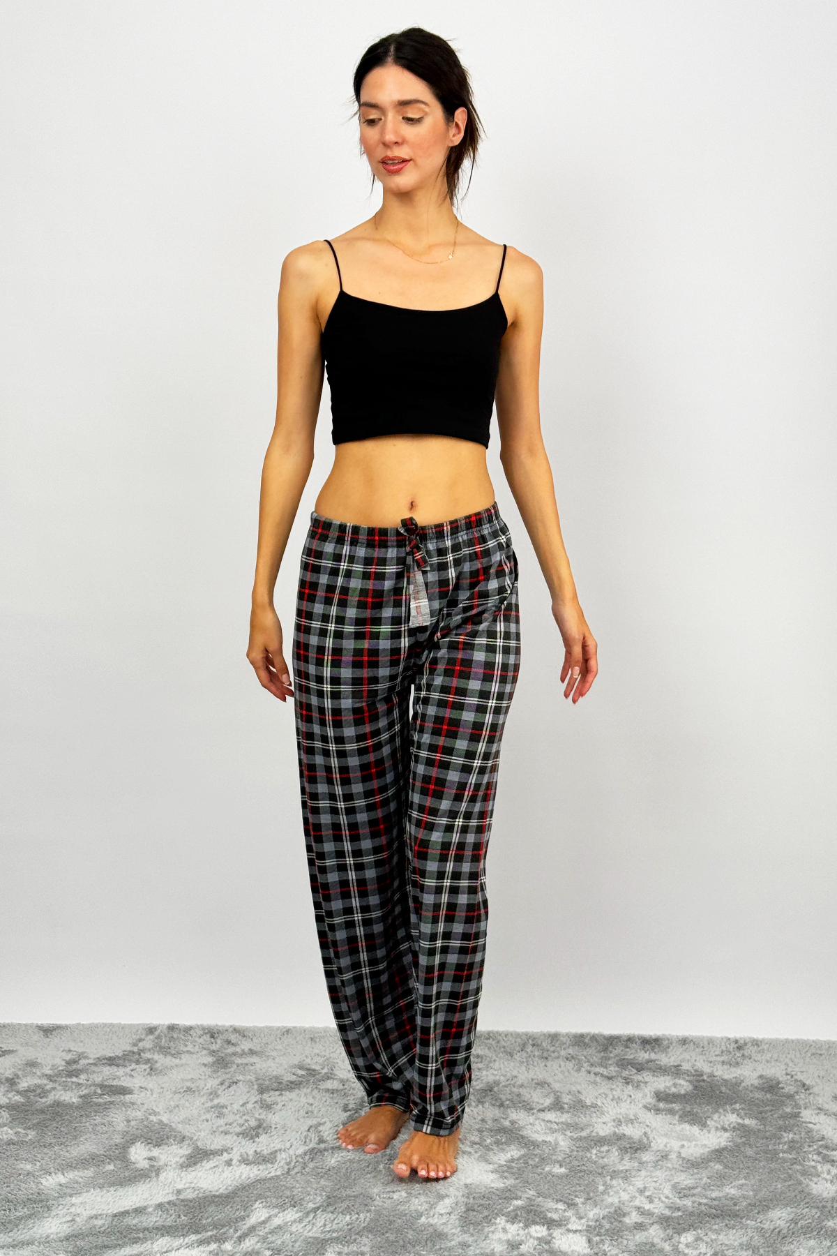 Kadın Pamuklu Ekose Desenli Pijama Altı Eşofman Kurdeleli