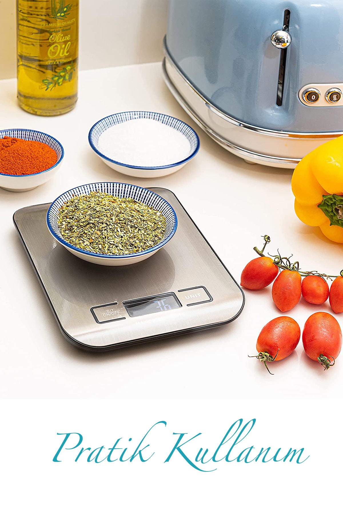 Mutfakta pratik bir çözüm sunan bu dijital el terazisi, yemeklerinizi dengeli bir şekilde ölçmenize olanak tanır