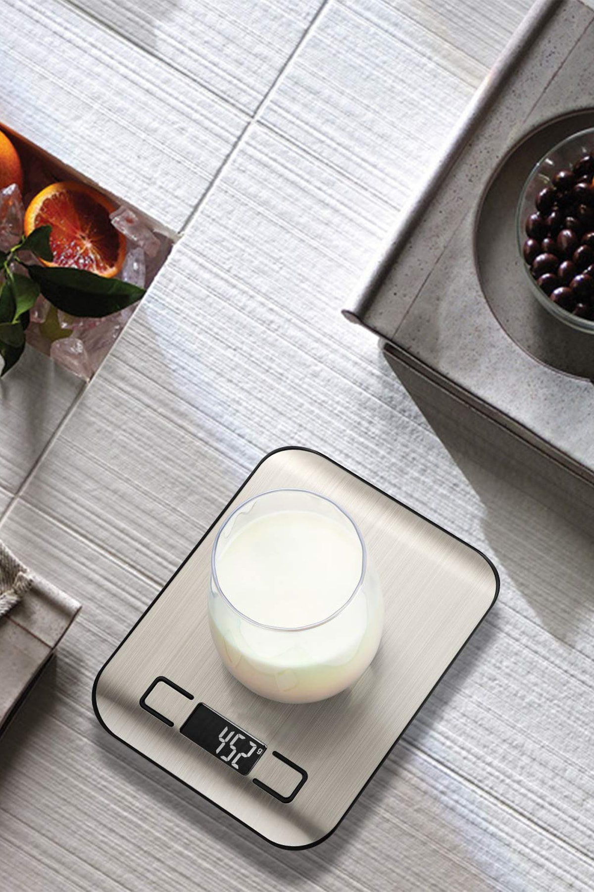 Hassas dijital ekranı sayesinde, meyve ve sebzelerinizi kolayca tartarak doğru porsiyonlarda hazırlayabilirsiniz
